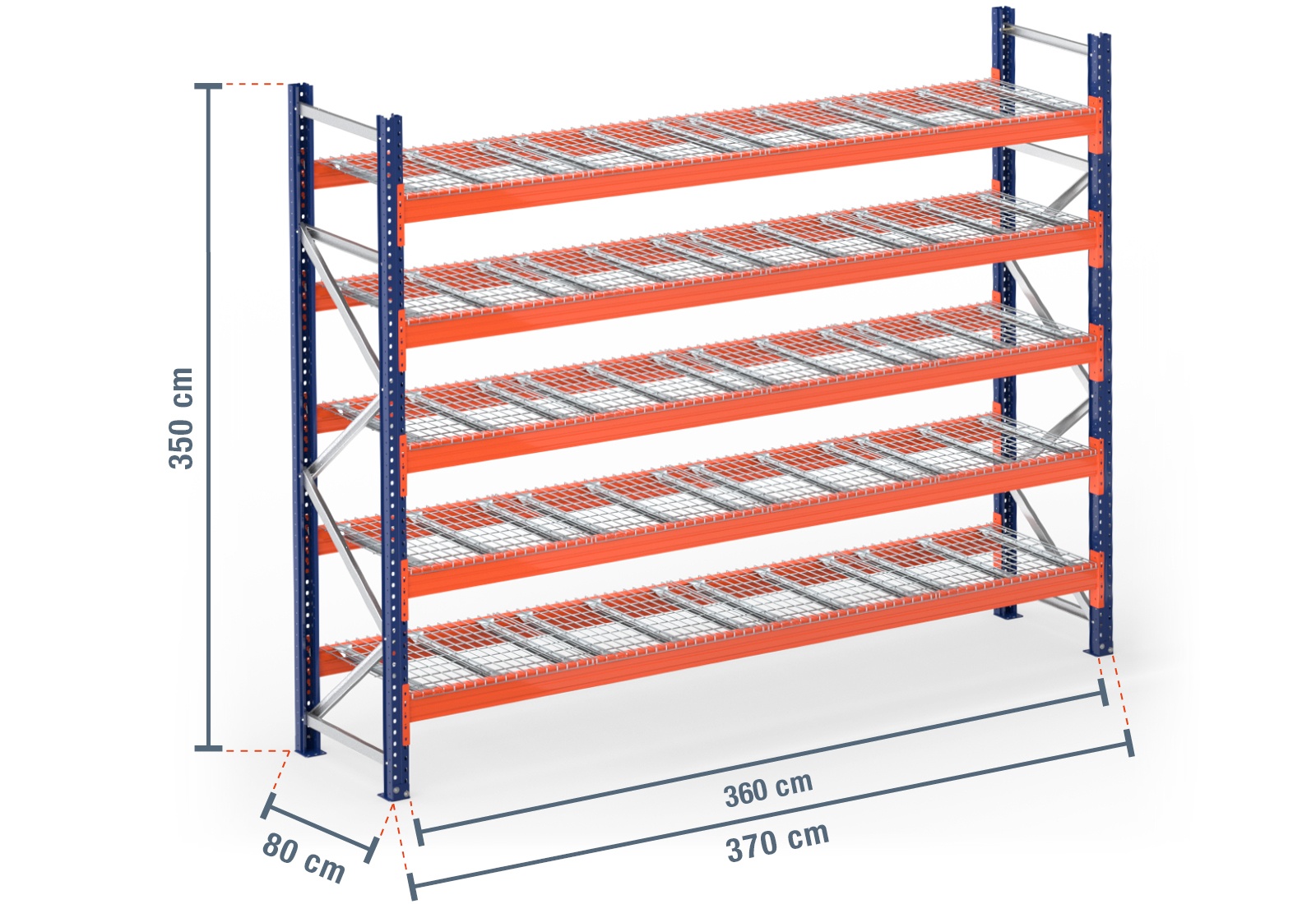 3,7 m pallet racking PR9000 / 80 cm deep / 3,5 m high / 5 levels / rack layer Wire mesh