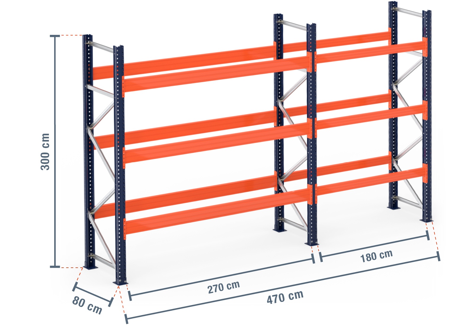 4,7 m pallet rack PR15000 / 80 cm deep / 3 m high / 3 levels for 20 euro pallets