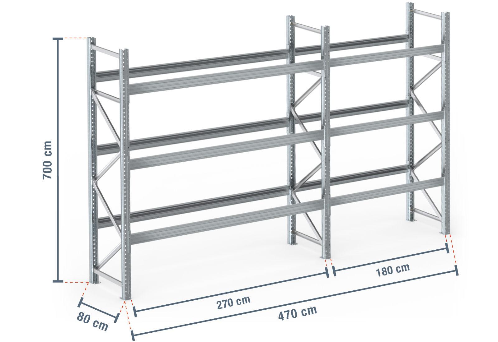 4,7 m pallet rack PR9000F galvanised / 80 cm deep / 7 m high / 3 levels for 20 euro pallets
