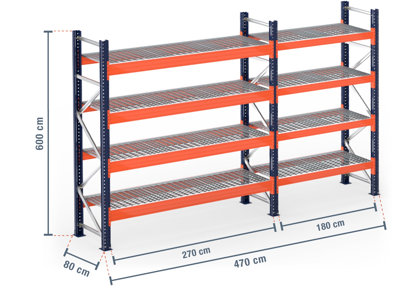 4,7 m pallet racking PR15000 / 80 cm deep / 6 m high / 4 levels / rack layer Galvanised mesh
