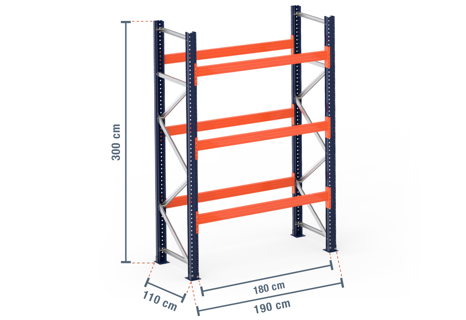 1,9 m pallet rack PR15000 / 110 cm deep / 3 m high / 3 levels for 8 euro pallets