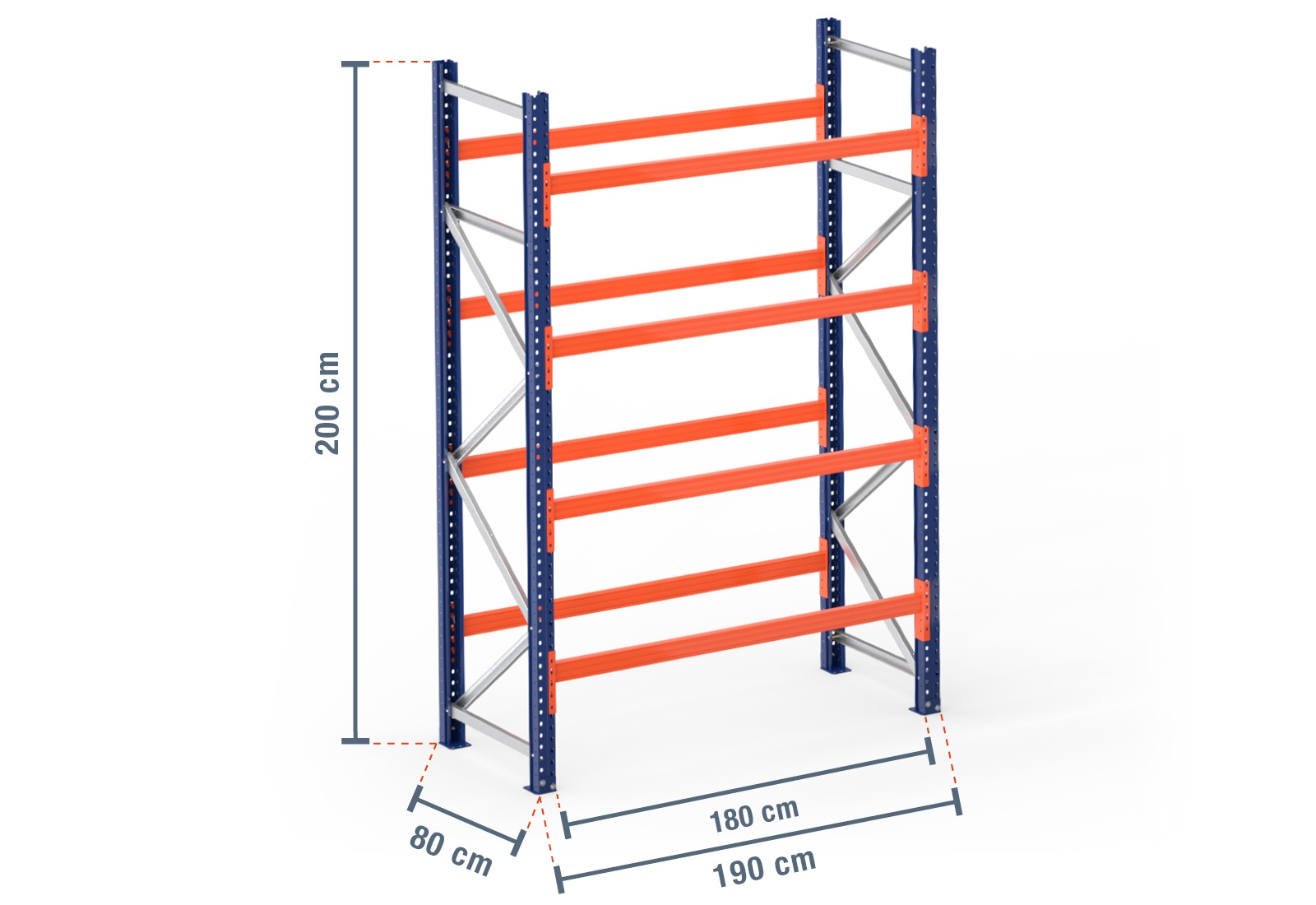 1,9 m pallet rack PR9000 / 80 cm deep / 2 m high / 4 levels for 10 euro pallets