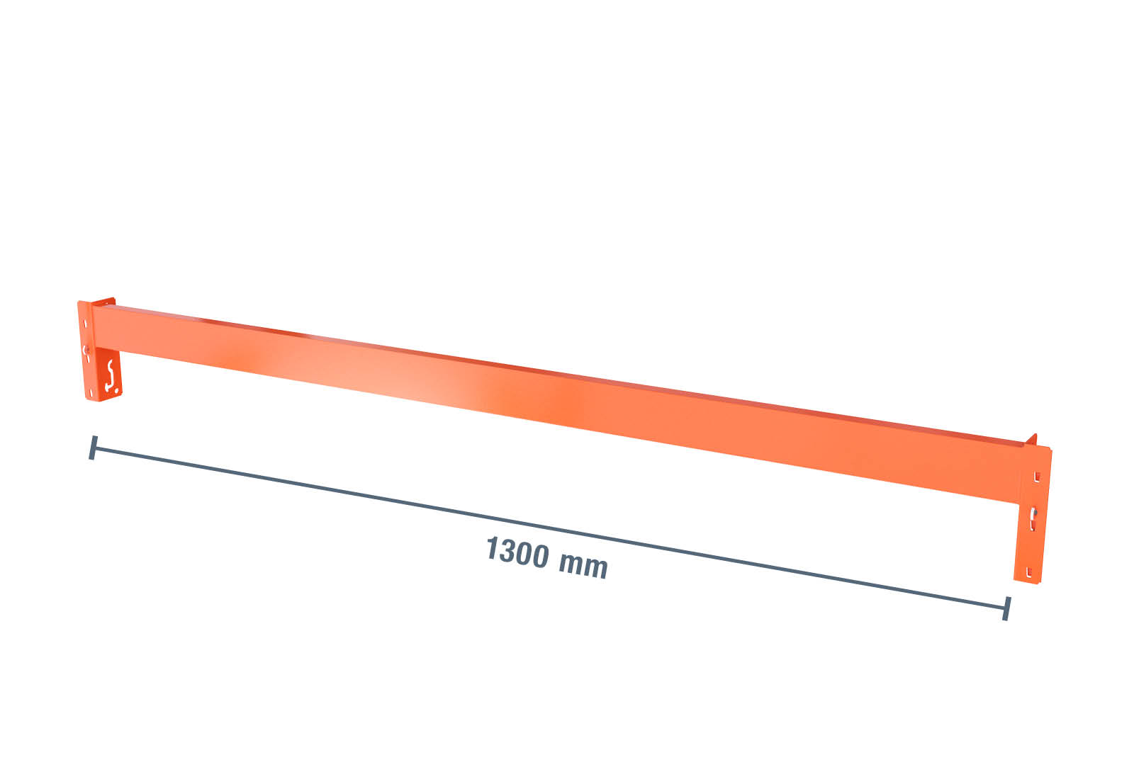 Storage rack corner crossbar for shelf depth 800 mm. Load capacity per pair: 500 kg. This cross brace is the actual load carrier of the shelf. Our TOPREGAL wooden shelves are placed on three cross braces. Two rear and one front cross brace must be used for the corner shelf to create a level surface. Painted in signal orange, it also contributes to operational safety.