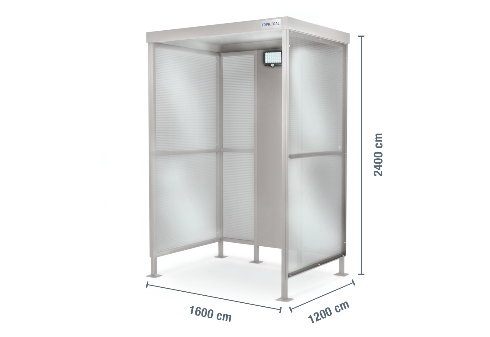 Small smoking shelter US1600/3, 1.600 mm x 1.200 mm x 2.400 mm, including solar lamp with motion detector