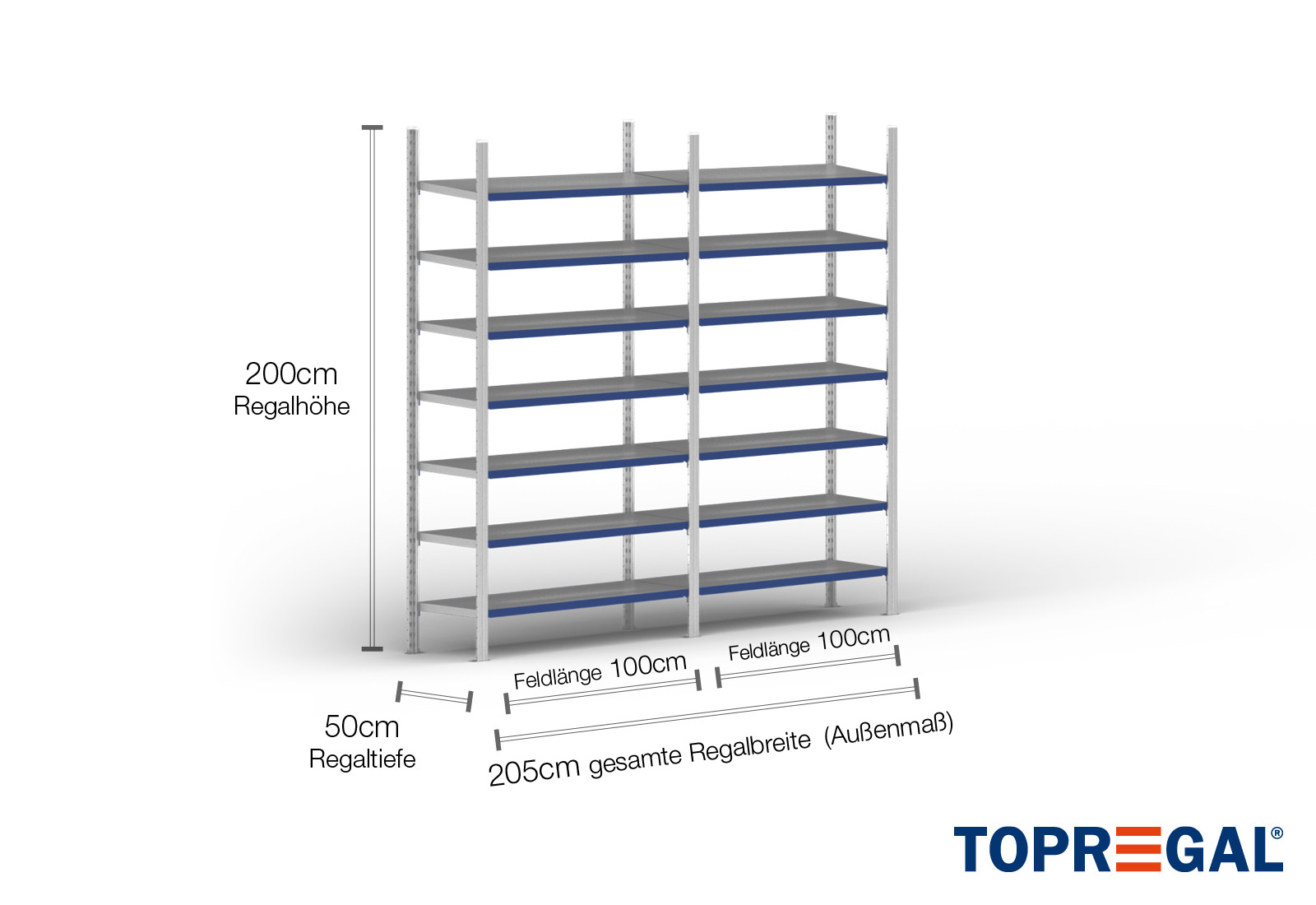 All data refer to evenly distributed loads. When loaded, the shelf load and field load must not be exceeded. In principle, the current guidelines on safety and health at work (german DGUV Rule 208-061) apply during use. TOPREGAL accepts no liability for accidents/damage caused by improper use. Our expert advisory team will be pleased to answer any questions you may have. Dimensions given are approximate and may deviate by a few centimetres. Contact us if you need the exact dimensions for your desired product.