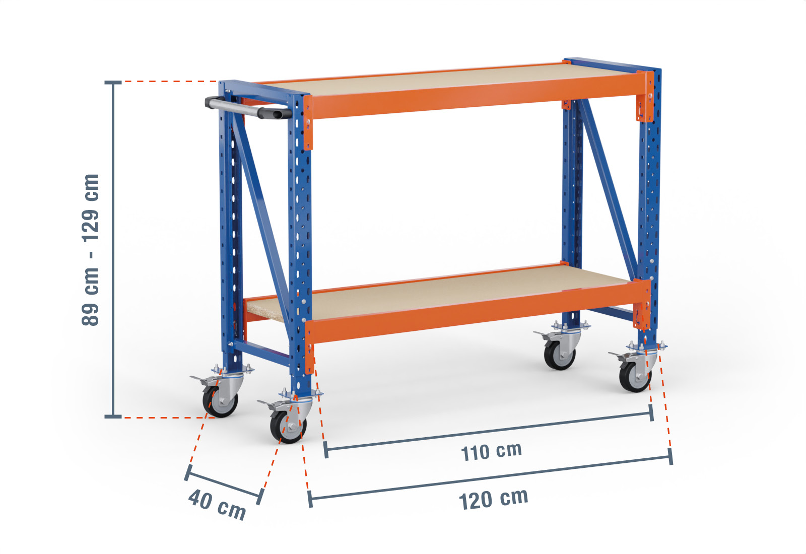 Equipped with 4 castors, this worktable is easy to move from place to place, with each castor withstanding a point load of 125 kg. This means that each of our mobile worktables is limited to a unit load of 500 kg. This turns the worktable into a mobile packing station, an assembly table or a practical workbench. Thanks to the roller bearings, it is also easy to move the small parts and tools. Keep you warehouse flexible with the mobile worktables from TOPREGAL.