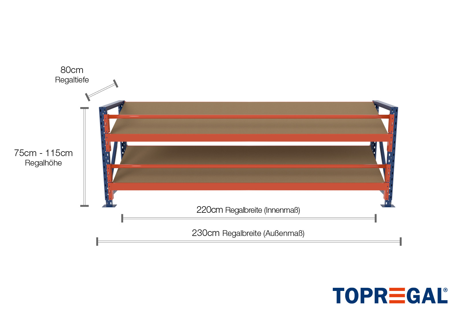 All data refer to evenly distributed loads. When loaded, the shelf load and field load must not be exceeded. In principle, the current guidelines on safety and health at work (german DGUV Rule 208-061) apply during use. TOPREGAL accepts no liability for accidents/damage caused by improper use. Our expert advisory team will be pleased to answer any questions you may have. Dimensions given are approximate and may deviate by a few centimetres. Contact us if you need the exact dimensions for your desired product.
