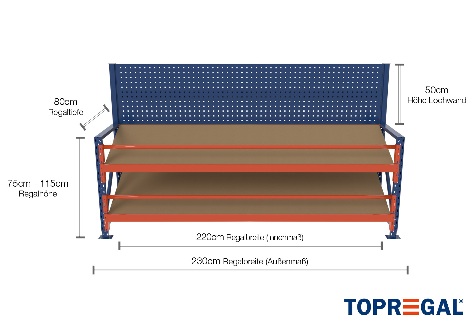 - 1 x storage-rack perforated rear panel220 cm wide, 50 cm high