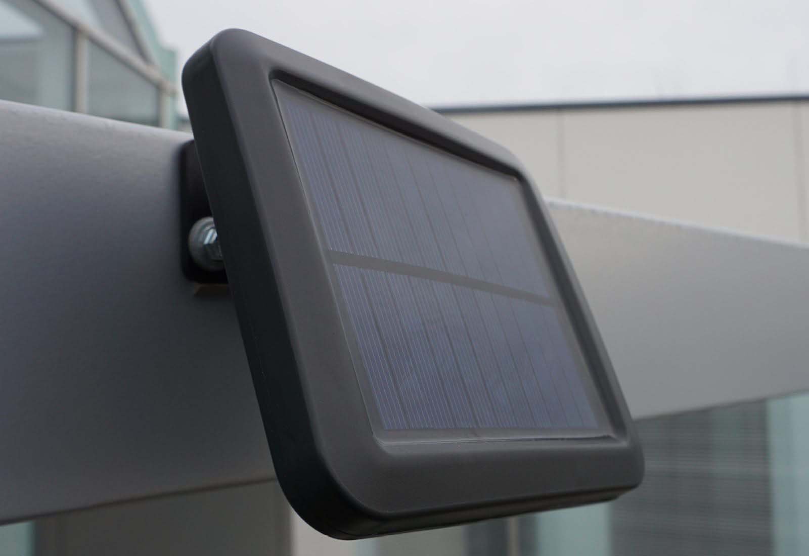 La lampe solaire à LED avec détecteur de mouvement a une forte puissance d'éclairage jusqu'à 800 lm et est équipée d'une batterie lithium-ion de 1200 mAh qui dure jusqu'à 10 h en éclairage continu.