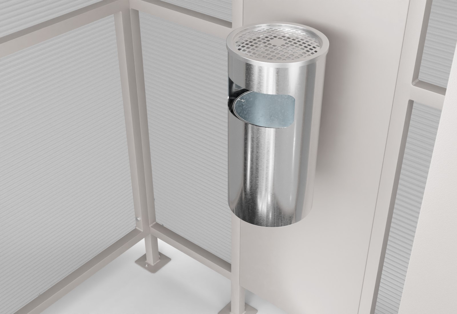 Notre cabine fumeur n'offre pas seulement beaucoup d'espace pour la pause et l'échange entre collaborateurs. Avec son design rectiligne et sobre, composé de profilés étroits en acier et de grandes vitres en polycarbonate, elle s'intègre dans presque tous les environnements et brille par sa beauté discrète. Des matériaux haut de gamme et une excellente qualité vont de soi chez nous et sont essentiels pour l'utilisation en extérieur de notre abri pour fumeurs. De plus, il est suffisamment grand pour accueillir des éléments supplémentaires, tels que des bancs ou un cendrier sur pied, afin d'élargir encore sa fonctionnalité.
