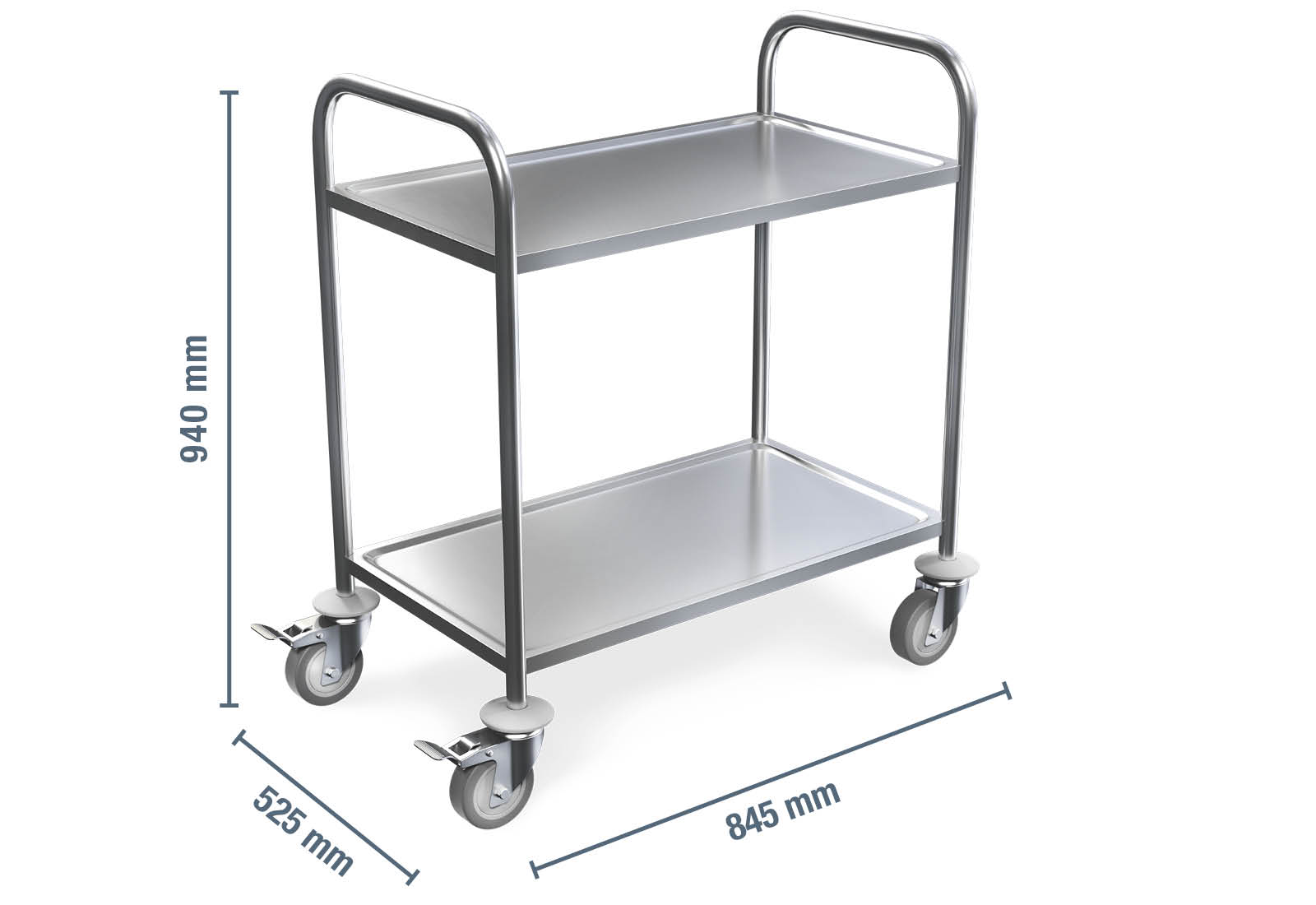 • 1 x Chariot à plateaux, chariot de service, 2 niveaux, 845 mm x 525 mm x 940 mm, capacité de charge 100 kg