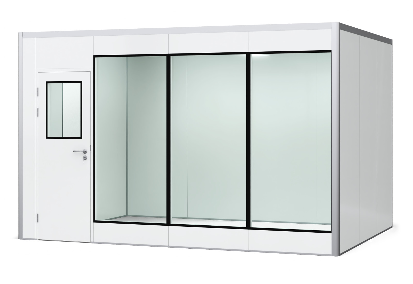 Avec les composants individuels de la gamme PREFAB, vous pouvez configurer des cabines d’atelier selon vos souhaits. La hauteur (dimension intérieure 2.500 mm | dimension extérieure 2.550 mm) et la profondeur de la pièce (3.000 mm dimension intérieure | dimension extérieure 3.100 mm) ne varient pas.