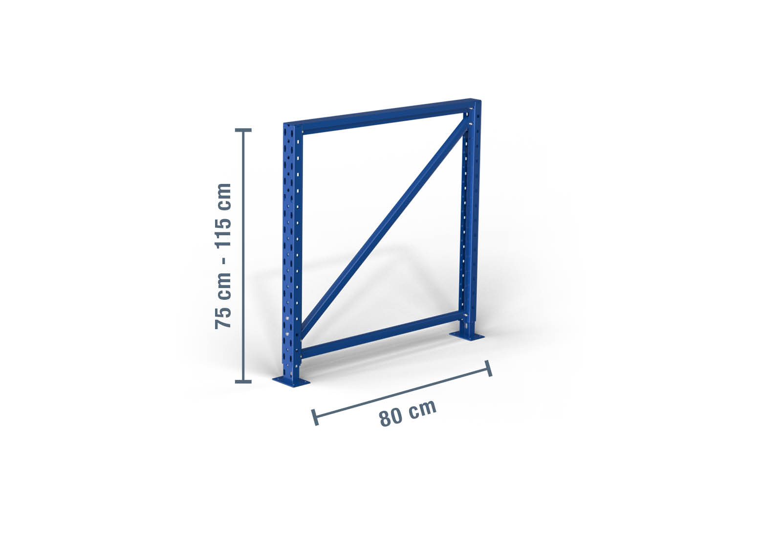 Montant pour établi multifonction MFW1000 en acier laminé à froid d’une hauteur de 0,75 m et d’une profondeur de 80 cm. La charge d’unité (charge max. entre deux montants de rack de stockage) s’élève à 2.000 kg. Le thermolaquage bleu protège le montant pour MFW1000 contre la corrosion. Il est solidement fixé au sol à l’aide de boulons d’ancrage M8 x 55 mm, ce qui assure la stabilité de l’ensemble du rack de stockage.