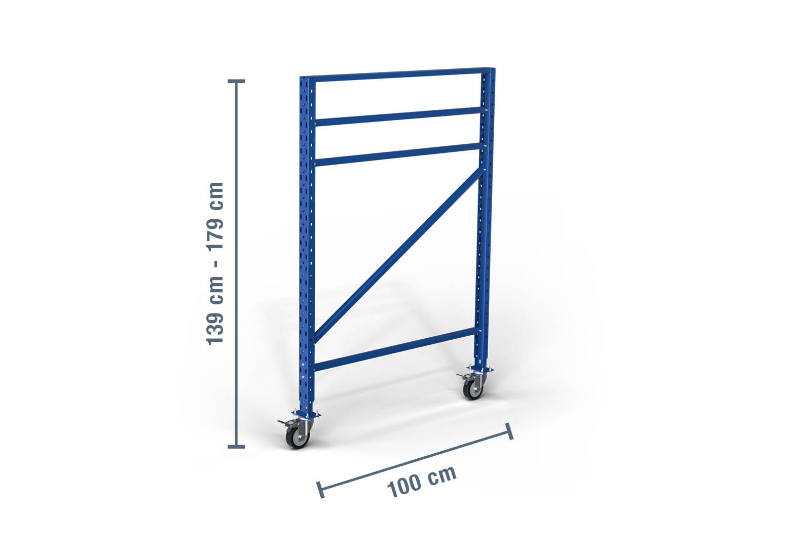 1.390 - 1.790 mm montant / réglable en hauteur / mobile pour rack de stockage LR2000 / profondeur 100 cm