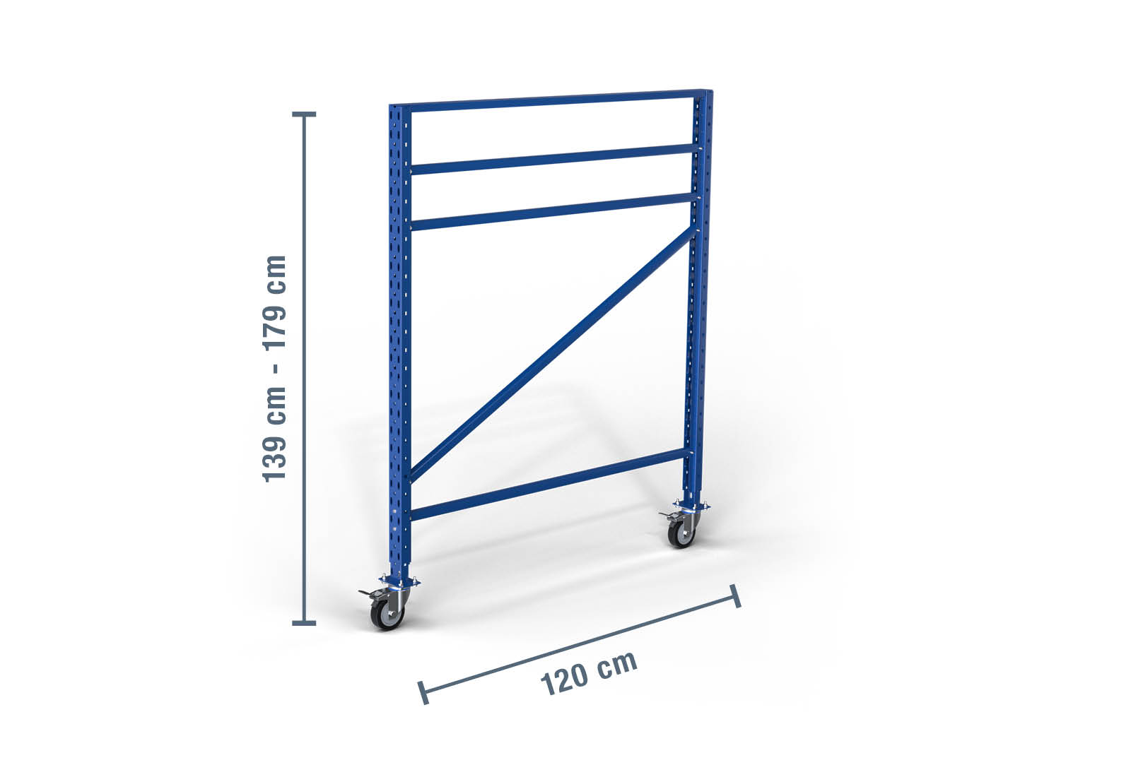 1.390 - 1.790 mm montant / réglable en hauteur / mobile pour rack de stockage LR2000 / profondeur 120 cm