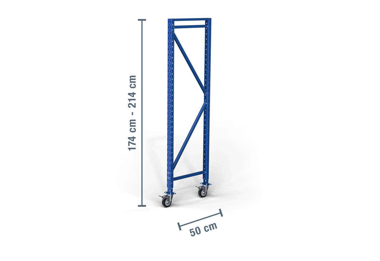 1.740 - 2.140 mm montant / réglable en hauteur / mobile pour rack de stockage LR2000 / profondeur 50 cm
