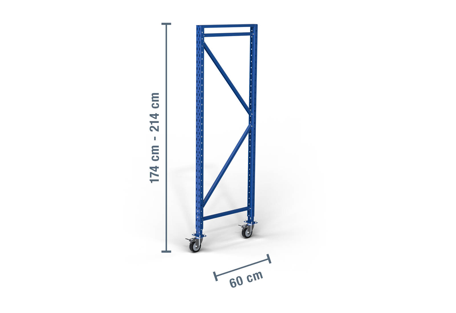 - 1 x 1.740 - 2.140 mm montant / réglable en hauteur / mobile pour rack de stockage LR2000 / profondeur 60 cm