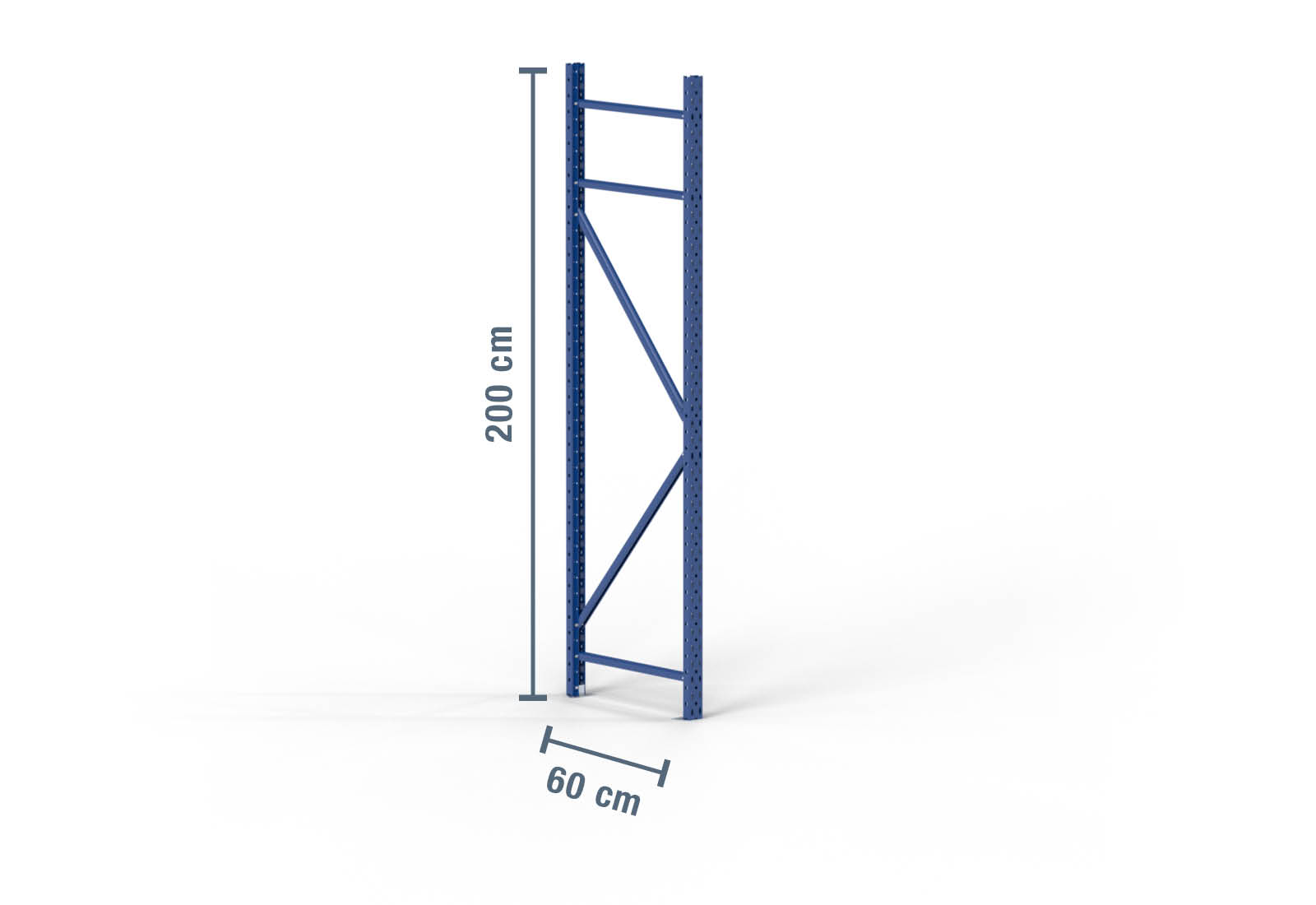 Montant pour rack de stockage en acier laminé à froid d’une hauteur de 2 m et d’une profondeur de 60 cm. La charge d’unité (charge max. entre deux montants de rack de stockage) s’élève à 2.000 kg. Le thermolaquage bleu protège le montant de rack contre la corrosion. Il est solidement fixé au sol à l’aide de boulons d’ancrage M8 x 55 mm, ce qui assure la stabilité de l’ensemble du rack de stockage.