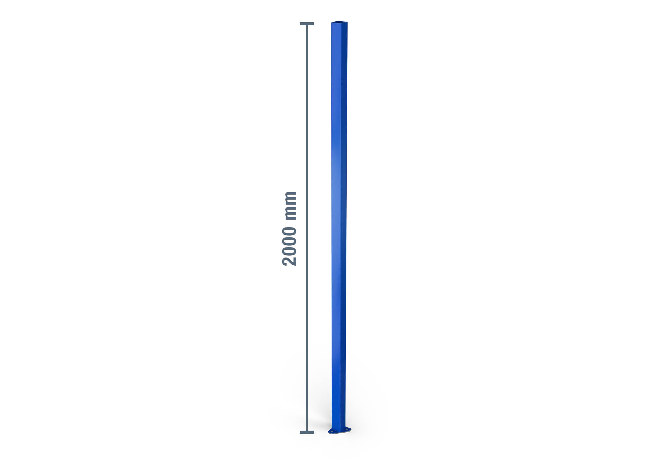 Profilé d'angle pour rayonnage de stockage LR2000 en acier laminé à froid d'une hauteur de 2 m. La charge admissible (charge max. entre deux montants de rayonnage) est de 2.000 kg. Le revêtement par poudre bleu protège durablement le matériau contre la corrosion. Le profilé de support est solidement fixé au sol à l'aide de M8 x 55 mm boulons d'ancrage, assurant ainsi la stabilité de l'ensemble du rayonnage de stockage.