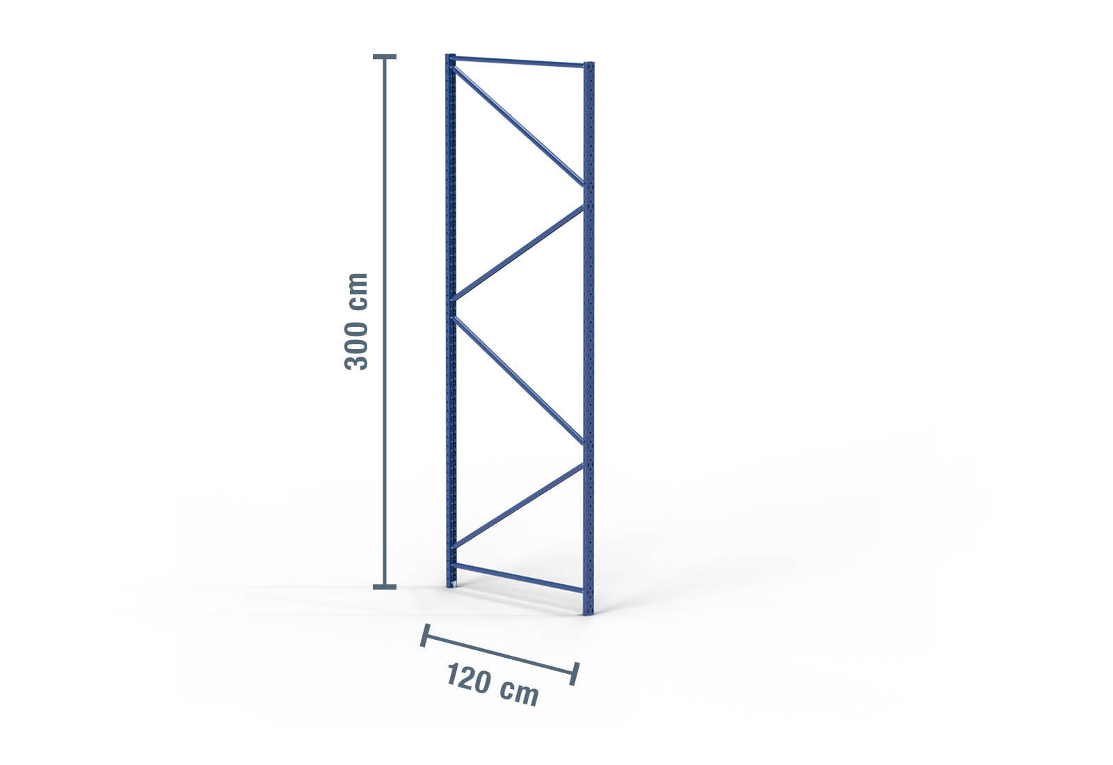 Montant pour rack de stockage en acier laminé à froid d’une hauteur de 3 m et d’une profondeur de 120 cm. La charge d’unité (charge max. entre deux montants de rack de stockage) s’élève à 2.000 kg. Le thermolaquage bleu protège le montant de rack contre la corrosion. Il est solidement fixé au sol à l’aide de boulons d’ancrage M8 x 55 mm, ce qui assure la stabilité de l’ensemble du rack de stockage.