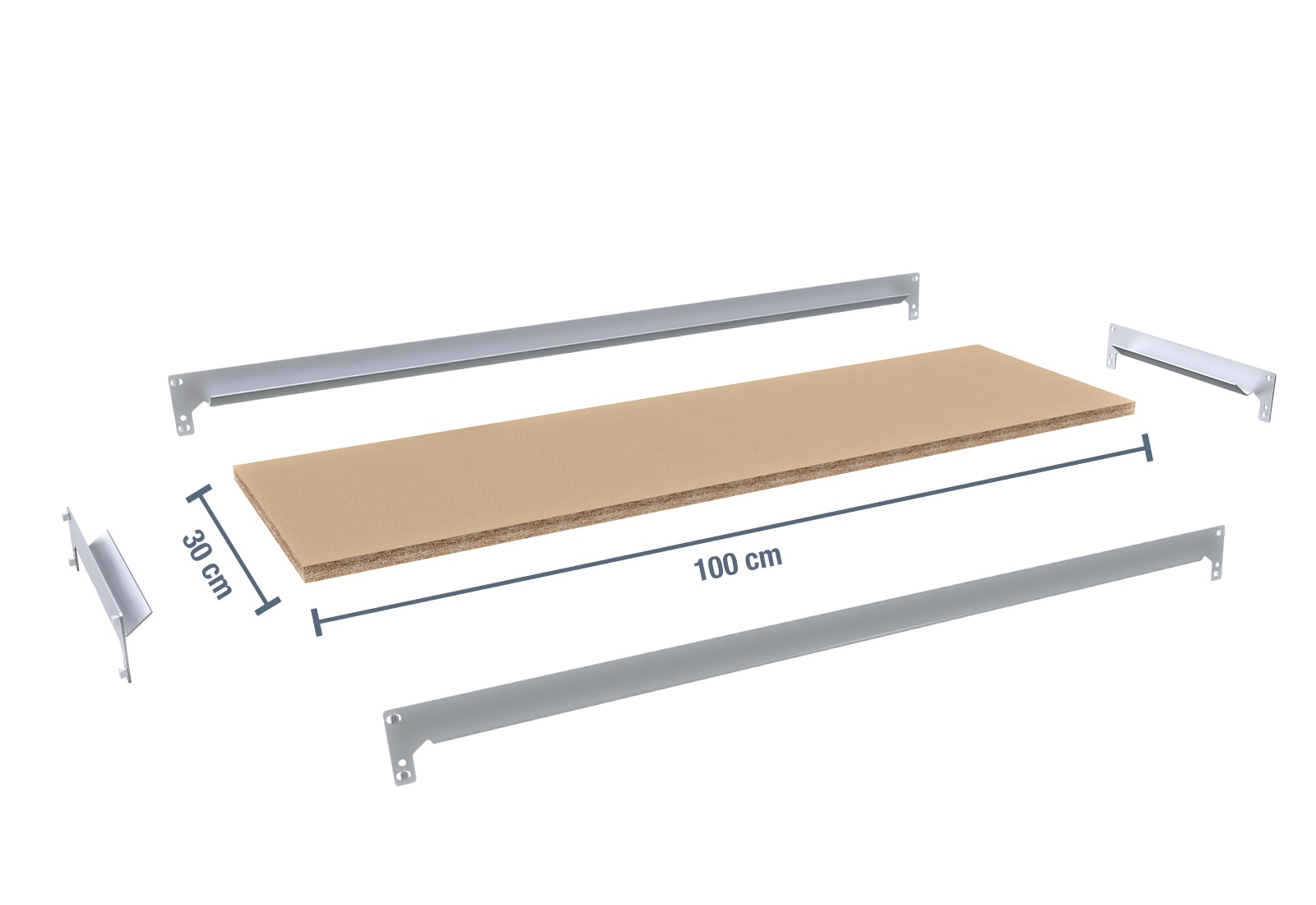 100 cm platelage en bois pour rack à tablettes FB200 / 30 cm profondeur avec entretoises de fixation