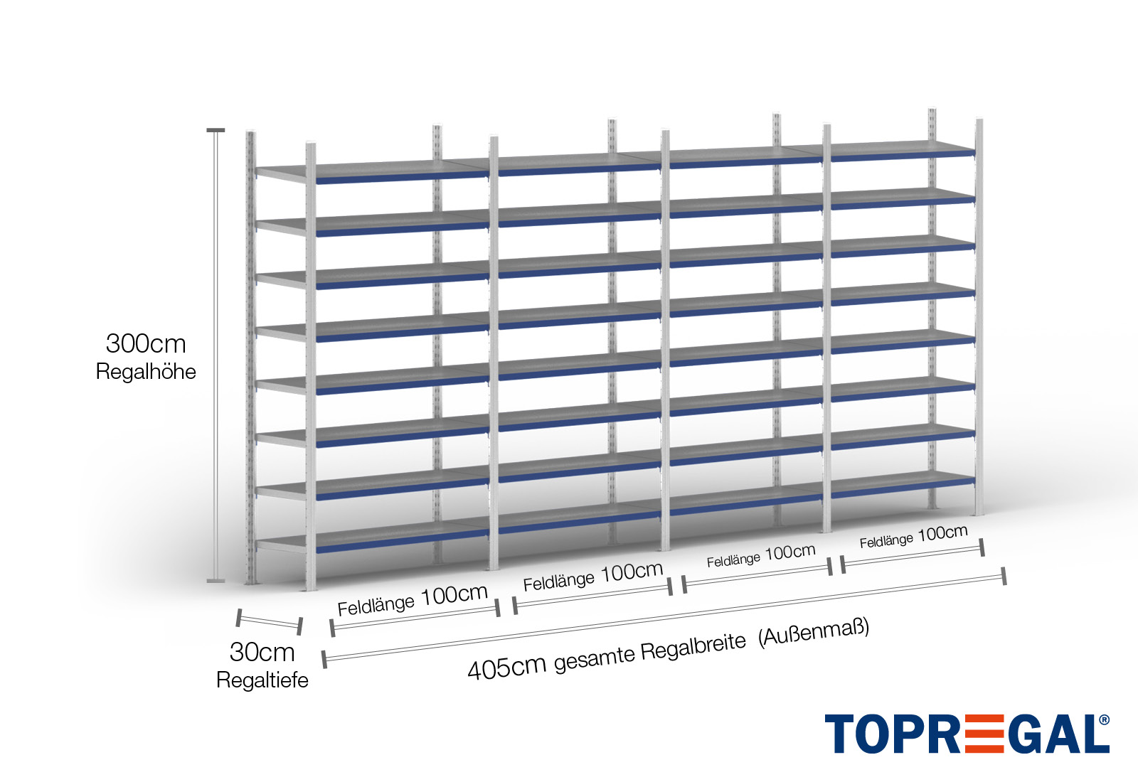 Toutes les données se réfèrent à des charges uniformément réparties. En cas de chargement, la charge par plateau et la charge par travée ne doivent pas être dépassées. En principe, les directives actuelles sur la sécurité et la santé au travail s'appliquent lors de l'utilisation (Règle DGUV allemande 208-061). TOPREGAL décline toute responsabilité en cas d'accidents/dommages dus à une utilisation non conforme. Notre équipe de conseillers spécialisés répondra à vos questions à ce sujet. Les dimensions indiquées sont approximatives et peuvent varier de quelques centimètres. Contactez-nous si vous avez besoin des dimensions exactes du produit que vous souhaitez acheter.