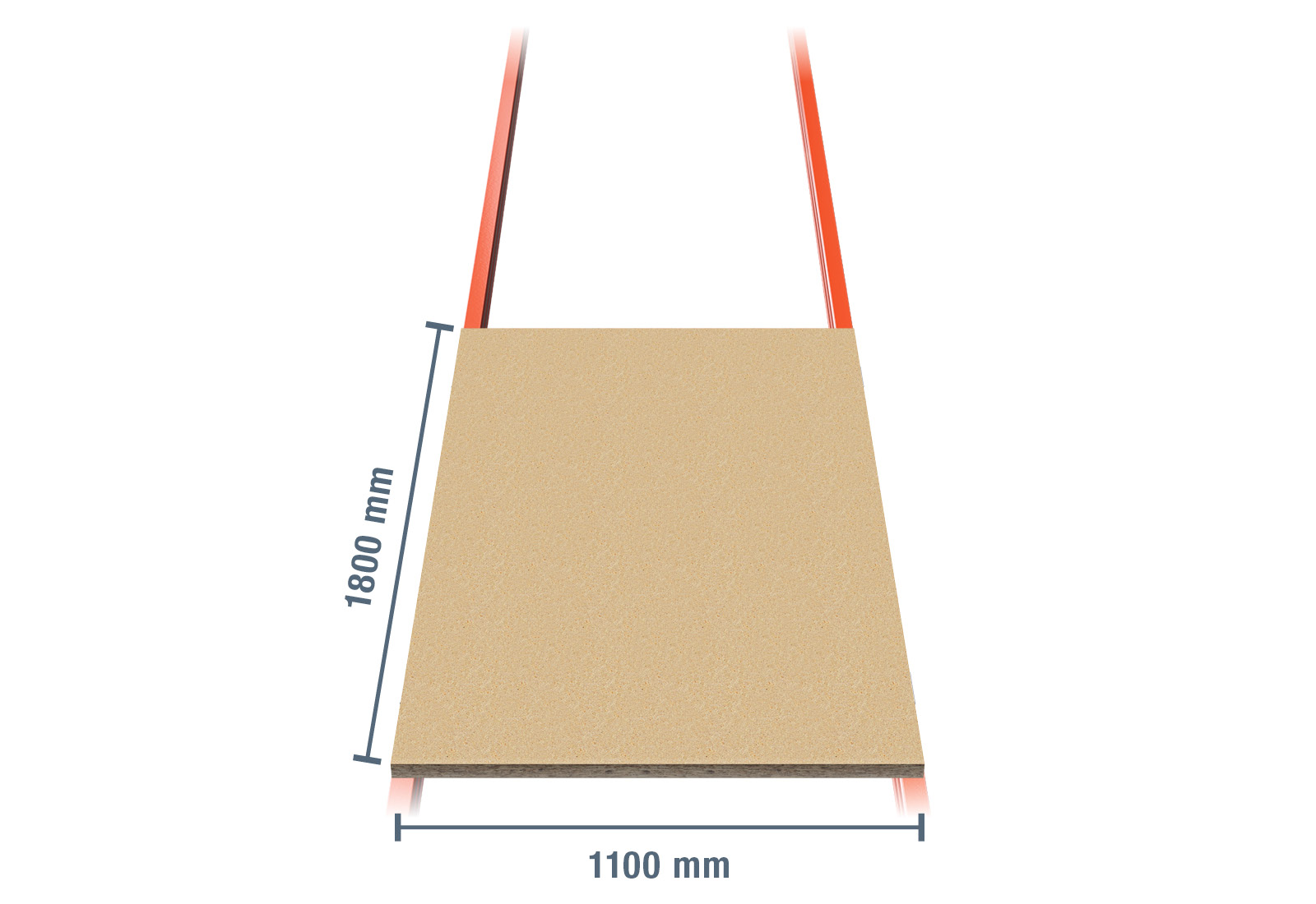 • 1 x 1.800 mm platelage en bois pour rack à palettes PR15000 / profondeur 1.100 mm / épaisseur 38 mm