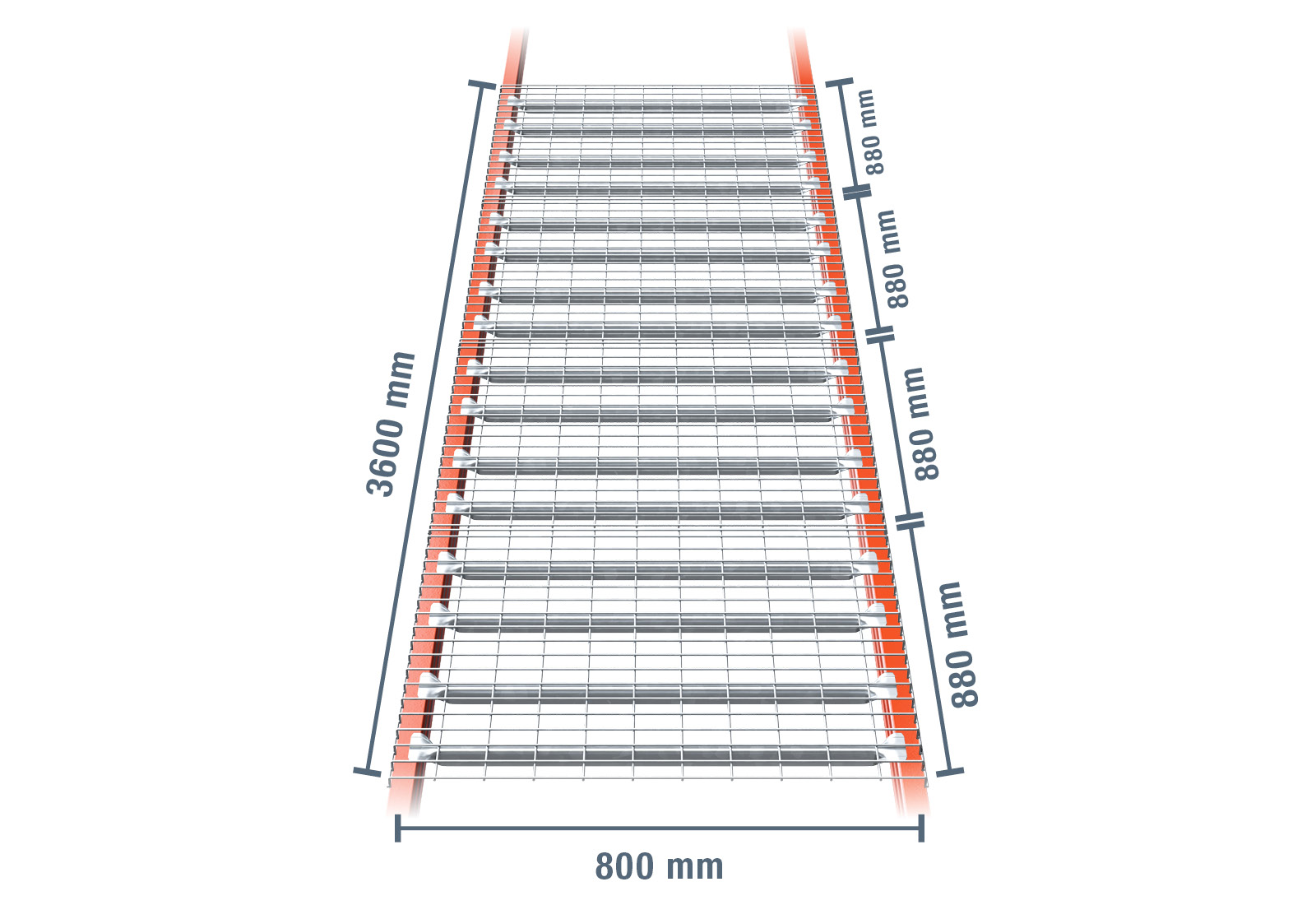 360 cm platelage en treillis métallique pour rack à palettes PR9000 / profondeur 800 mm / capacité de charge 2.200 kg