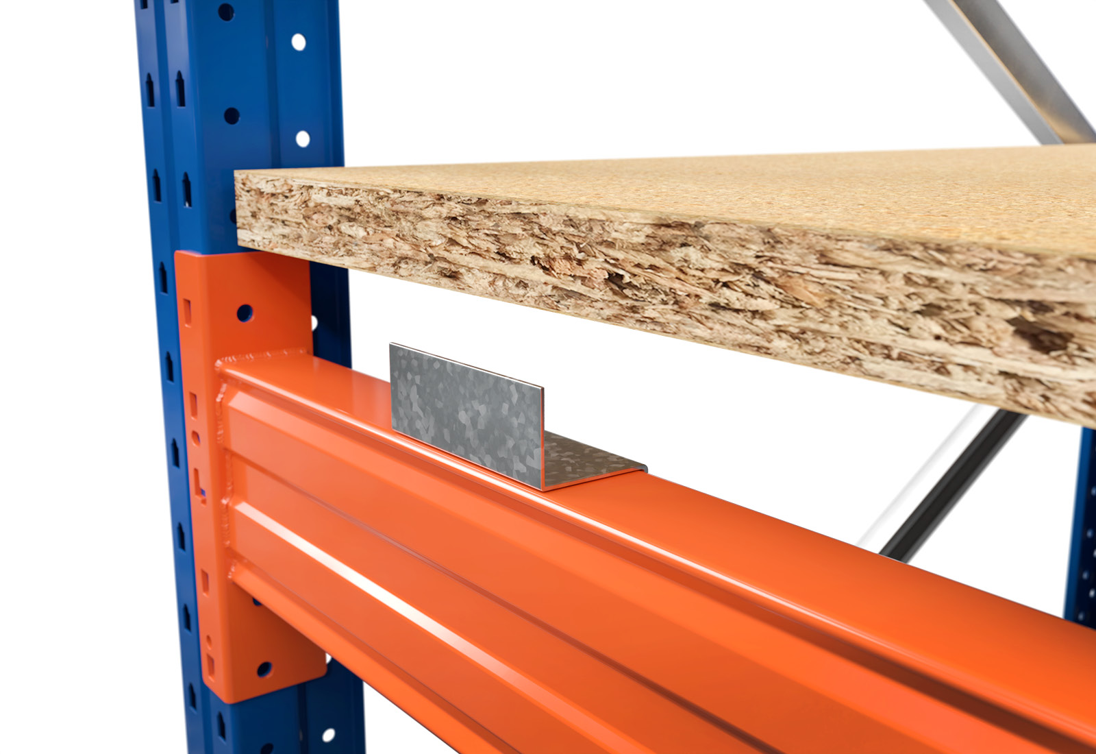 Grâce à ce platelage en bois pour rack à palettes, vous pouvez ajouter rapidement et facilement une surface de rangement supplémentaire dans votre rack à palettes TOPREGAL, ce qui permet également un stockage sans palette. Le platelage en bois économique est un aggloméré d’une épaisseur de 38 mm et de dimensions x 1.100 mm, qui est posé sur les traverses du rack à palettes à l’aide de 4 angles en Z.