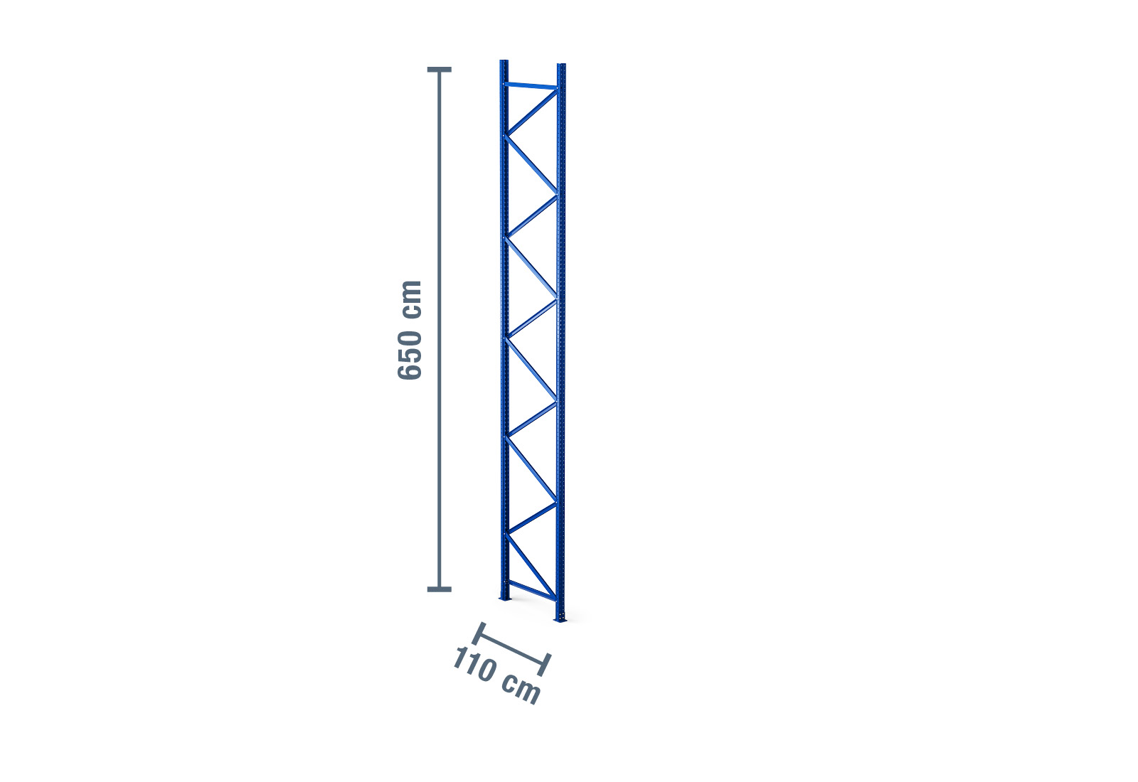 - 1 x 6,5 m montant pour rack à palettes PR15000 / profondeur 110 cm / charge d’unité 15.000 kg