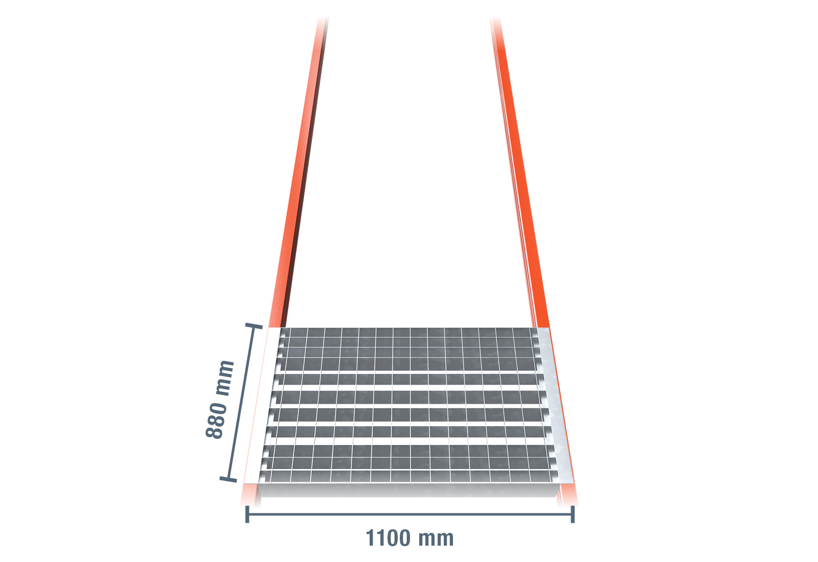 880 mm platelage grillagé galvanisé pour rack à palettes PR4500, PR9000, PR15000 / profondeur 1.100 mm / capacité de charge 800 kg