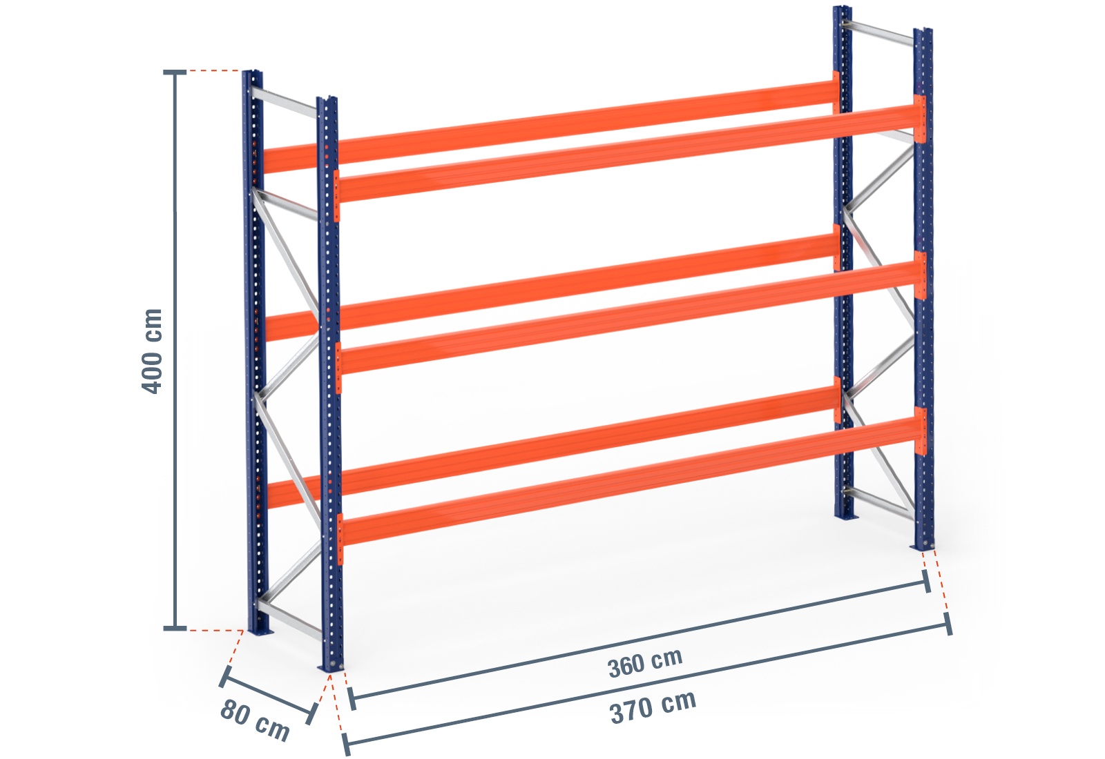 3,7 m rayonnage à palettes PR4500 / profondeur 80 cm / hauteur 4 m / 3 niveaux pour 16 palettes europe