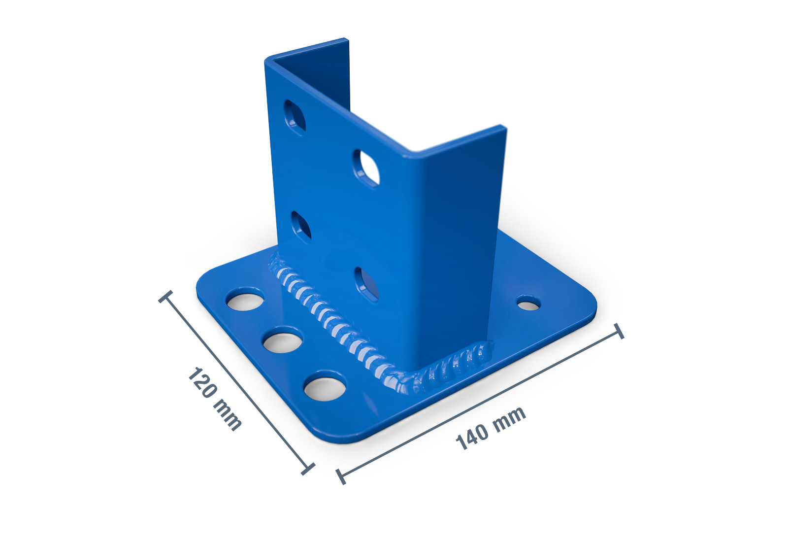 Les traverses sont thermolaquées en orange vif pour assurer la sécurité au travail. Elles s’accrochent simplement par enfichage dans les montants de rack. Des goupilles de sécurité supplémentaires protègent la traverse contre un retrait accidentel et assurent ainsi la sécurité. Les montants de rack à palettes se composent de deux profilés de montant thermolaqués en bleu. Les profilés de montant avant et arrière sont vissés ensemble à l’aide d’entretoises transversales et diagonales, ce qui permet une excellente stabilité. Afin de la garantir encore davantage, 2 socles sont montés aux extrémités inférieures de chaque montant de rack et ancrés solidement au sol à l’aide de boulons d’ancrage . Ainsi, notre rack à palettes modulaire est non seulement personnalisable, mais aussi particulièrement fiable grâce à sa fixation dans le sol.