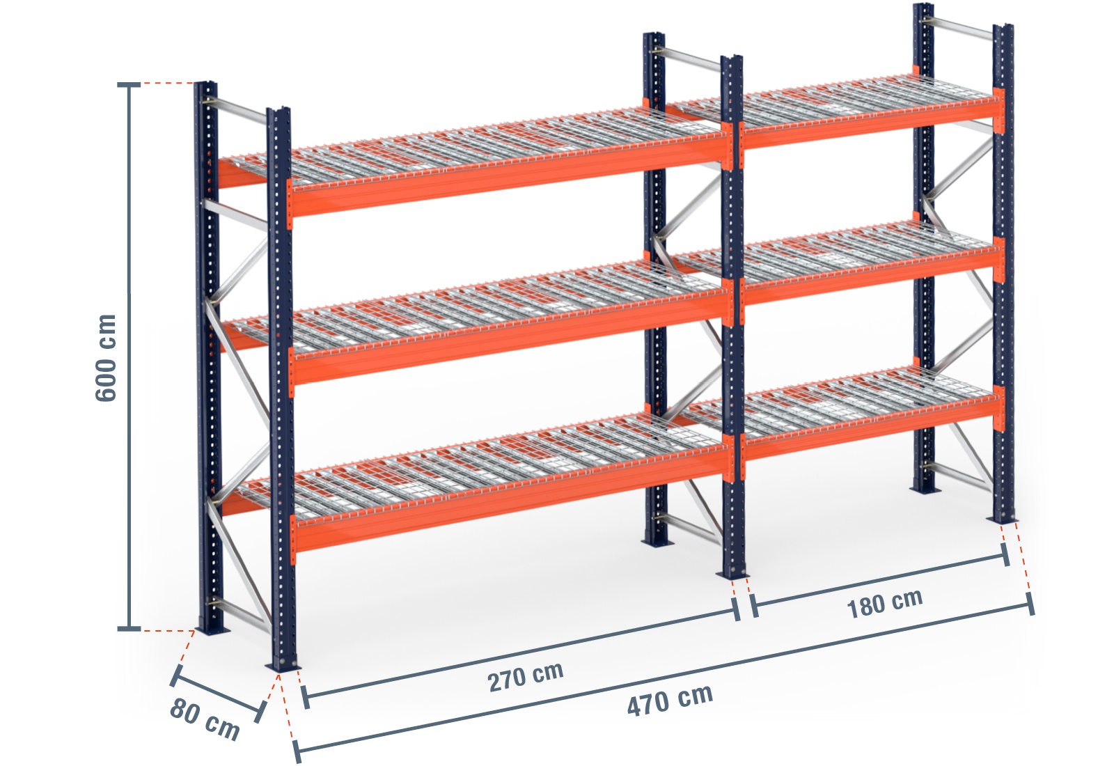 4,7 m rayonnage à palettes PR15000 / profondeur 80 cm / hauteur 6 m / 3 niveaux / platelage Treillis métallique