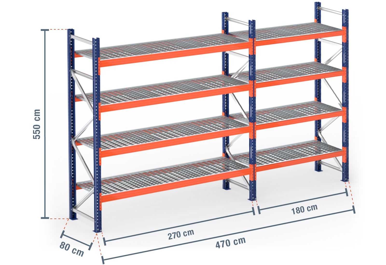 4,7 m rayonnage à palettes PR9000 / profondeur 80 cm / hauteur 5,5 m / 4 niveaux / platelage Grillage