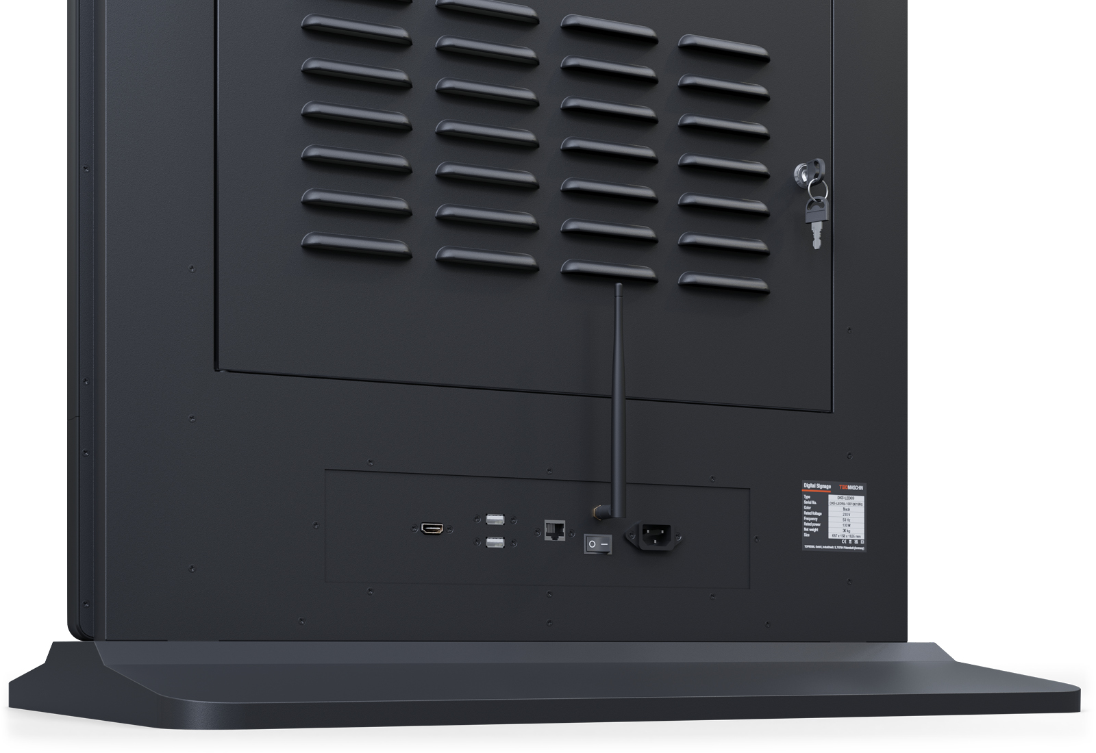 Après un montage extrêmement simple, la colonne de signalisation est immédiatement prête à l'emploi. Comme le système est autonome, vous pouvez choisir à votre gré l'emplacement à l'intérieur et même essayer différentes positions. Grâce au port USB et à la télécommande fournie, le système Android 11 convivial et intuitif vous permet de contrôler des contenus toujours nouveaux et changeants directement sur le panneau d'affichage numérique, et ce 24 heures sur 24 et 7 jours sur 7. Tous les formats courants sont pris en charge, qu'il s'agisse de fichiers vidéo, audio ou d'images. De plus, il est possible d'afficher des pages web et de télécharger des applications, car le panneau d'affichage numérique dispose du WiFi. Une version plus récente d'Android ne peut pas être mise à jour sur ces appareils.