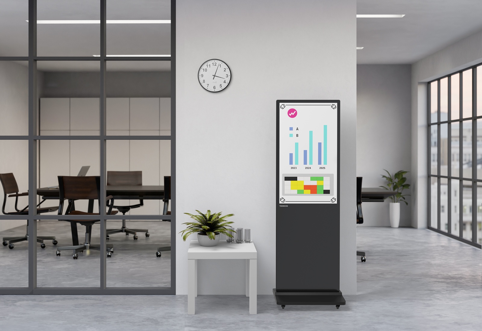 Avec le présentoir publicitaire numérique DKS-LED43 de TecMaschin, vous pouvez idéalement présenter des publicités de manière efficace pour les clients. En outre, l'affichage numérique permet de diffuser des présentations d'entreprises, de produits et de services ainsi que de nombreuses autres informations. La colonne publicitaire est parfaitement adaptée à une utilisation dans les salles d'exposition, les salons, la restauration ou les halls d'entrée. Même sur les surfaces de vente spéciales dans les magasins, cet accroche-regard lumineux avec ses deux haut-parleurs intégrés attire l'attention. Le tableau d'affichage numérique de de haut est particulièrement étroit avec ses 66 mm et enthousiasme par son faible poids propre de seulement 34 kg. Avec une diagonale d'écran de 43 in (9:16) et une résolution de 1.080 x 1.920 px, vous attirez l'attention des passants et des clients potentiels. Le module LED breveté avec plus de 6,7 Mio. couleurs affichables et un contraste de 3000:1 y contribue également.