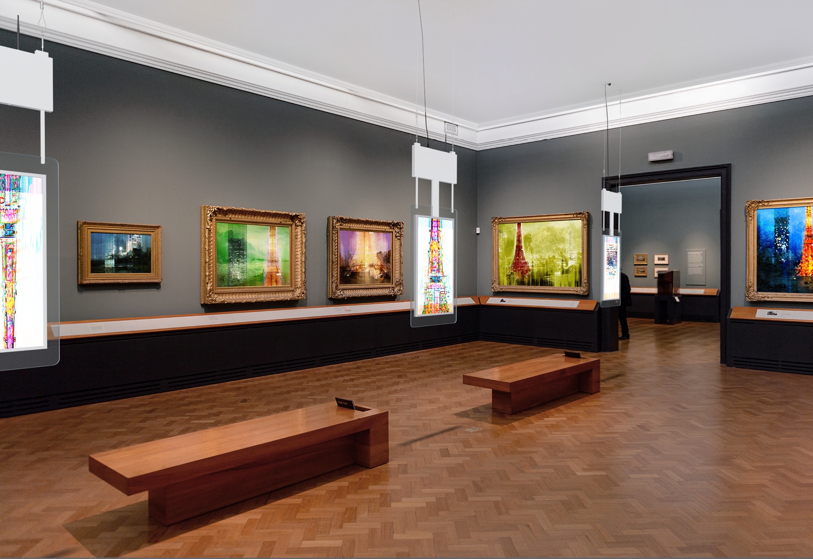 Simplement accroché - l'écran suspendu double face DHD2-LED43