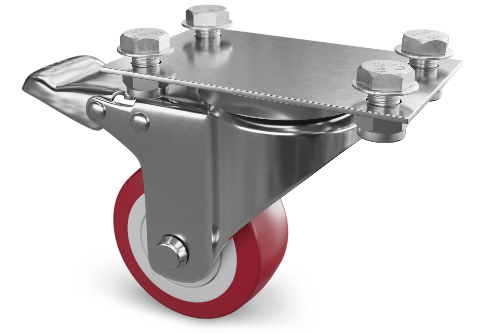 La roulette avec frein se trouve sous la nacelle ou la plateforme et permet un transport rapide et sûr vers le lieu d'utilisation souhaité.