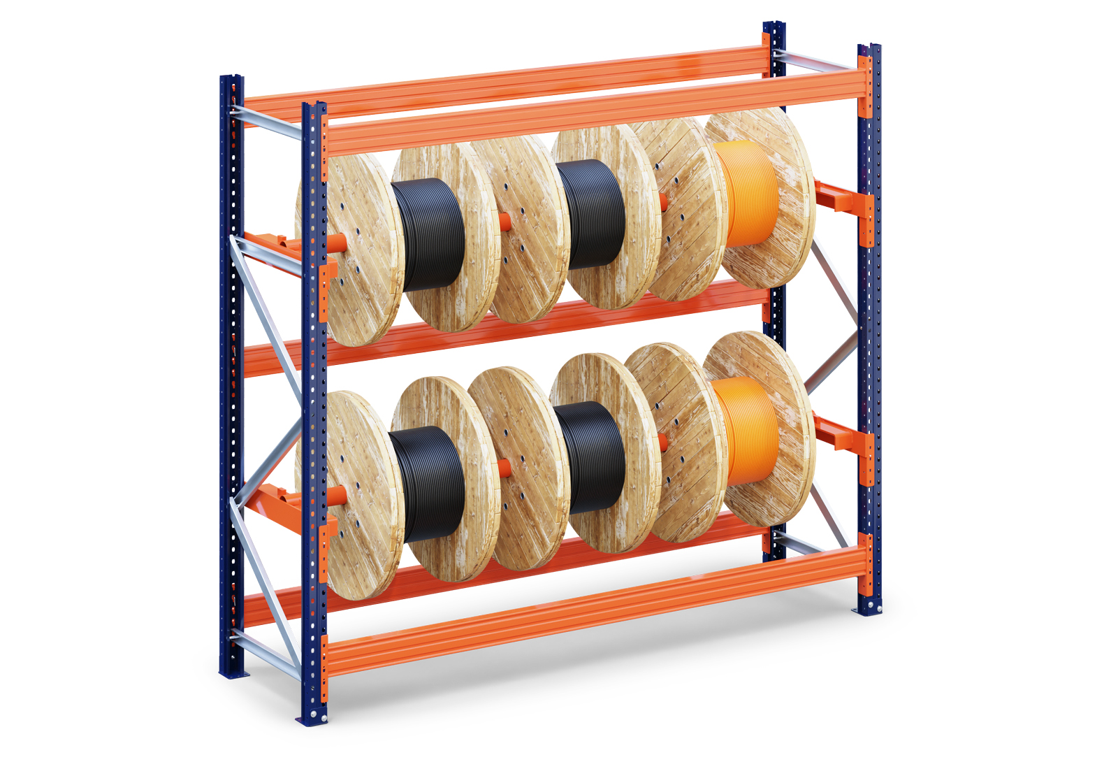 La couleur orange voyante augmente la visibilité et la sécurité dans l'entrepôt ou l'atelier. Le stockage en hauteur maximise la capacité, tandis que la construction est spécialement conçue pour permettre le déroulement manuel des tambours de câbles sans effort. Cela permet de gagner du temps et facilite le travail quotidien.