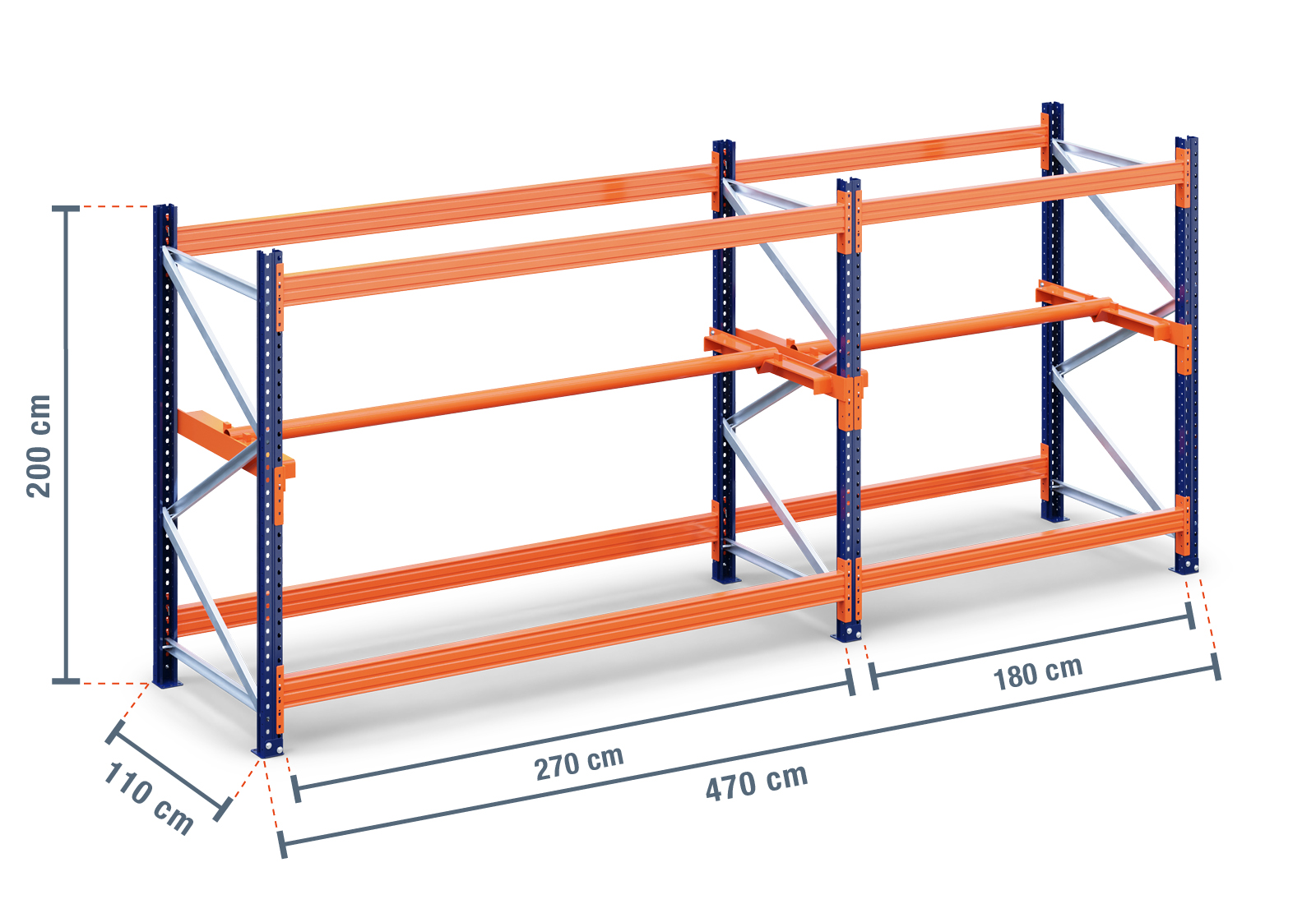 - 3 x Montant KTR9000 2 m haut / 110 cm bas avec entretoise, charge par travée 9.000 kg