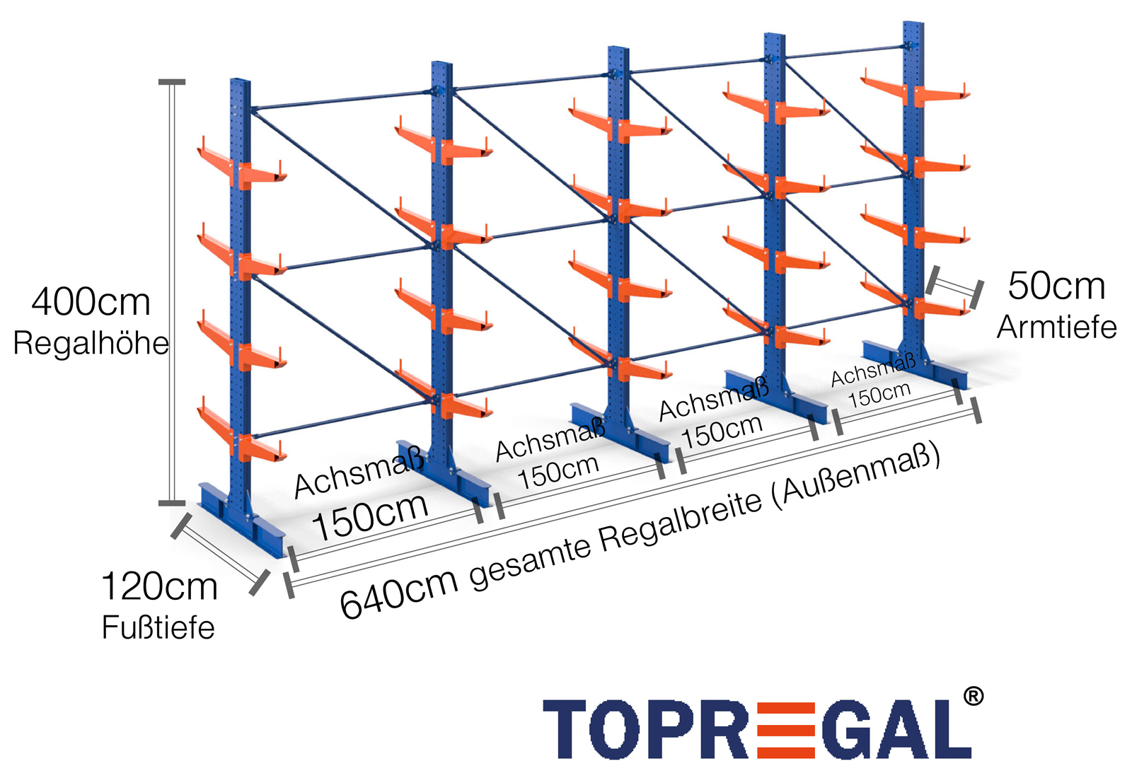 La dimension axiale est la dimension interne entre deux montants d'étagère. Selon le type de cantilever, nous proposons ces champs en 120 cm (KR2500) et en 100 cm / 150 cm (KR3000 / KR6000).