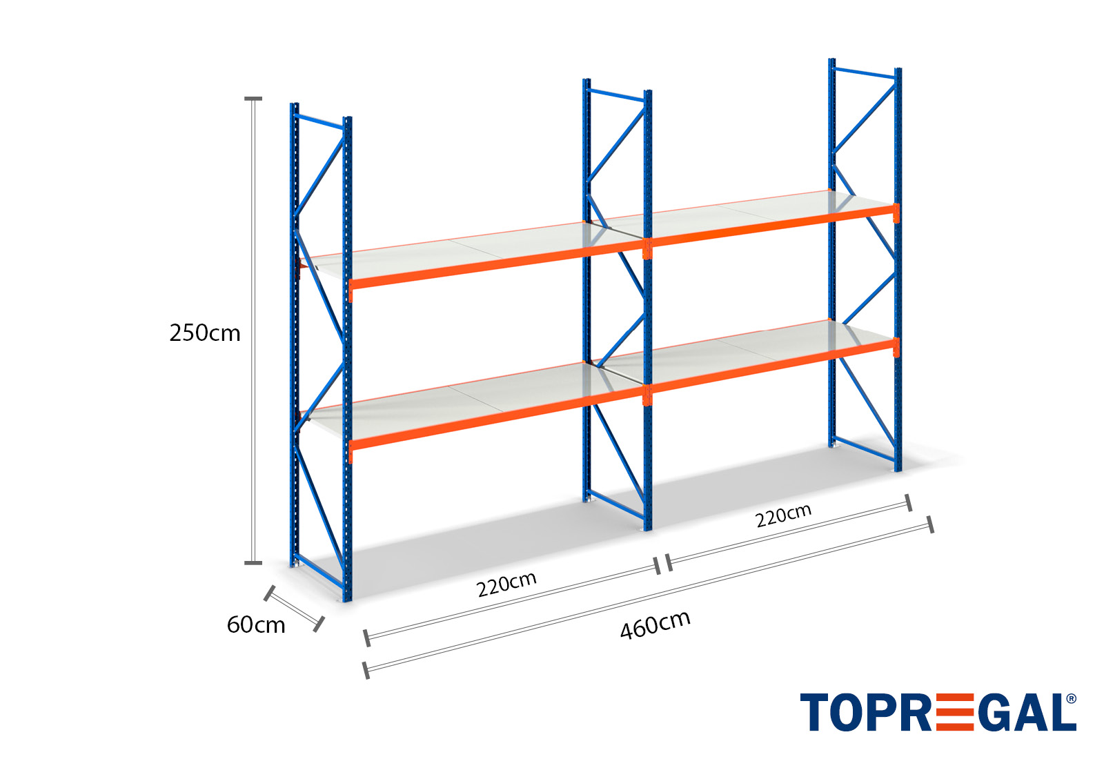 4,6 m rayonnage de stockage LR2000 / profondeur 60 cm / hauteur 2,5 m / 2 niveaux / platelage Acier