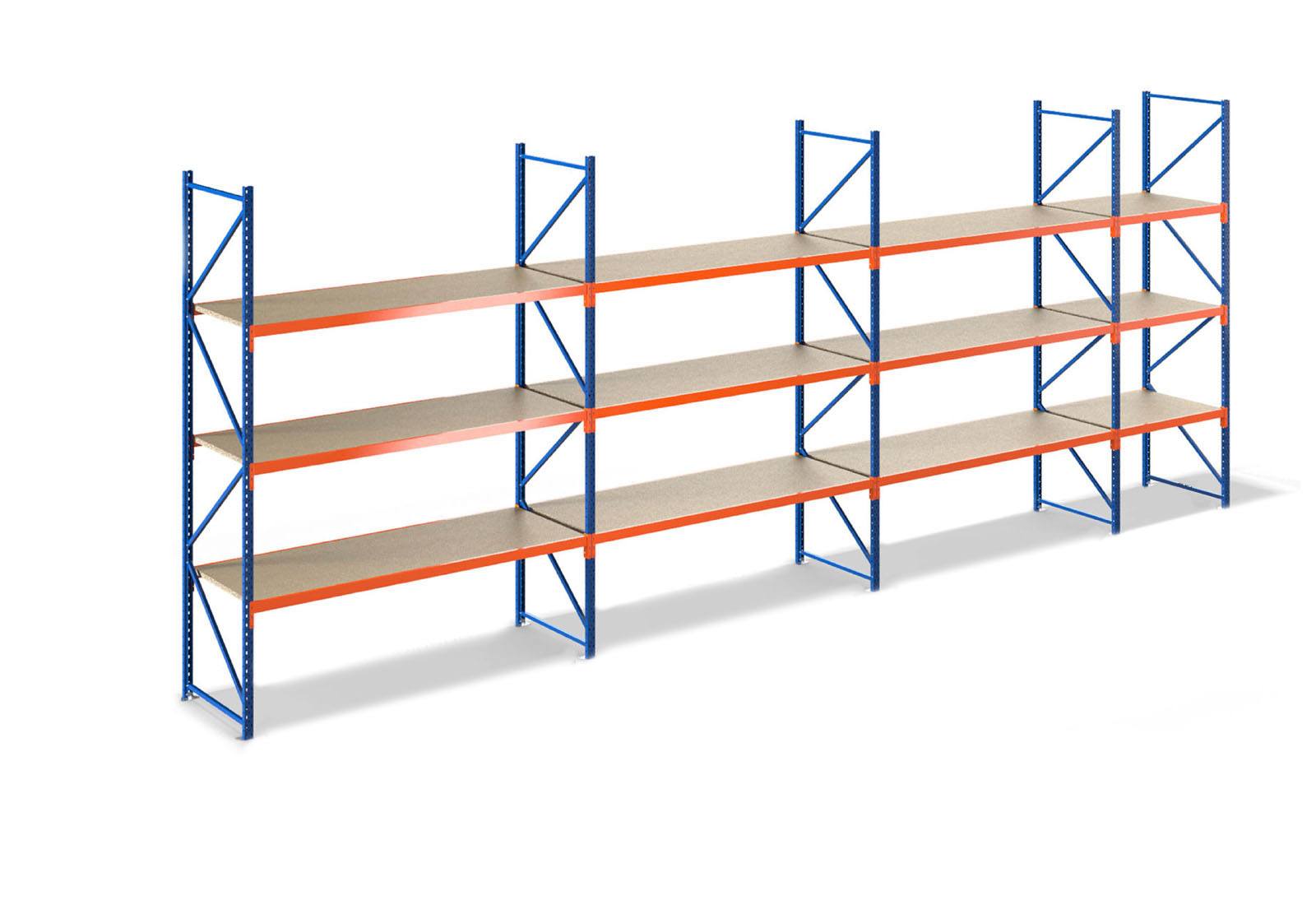 8,0 m rayonnage de stockage LR2000 / profondeur 60 cm / hauteur 3,5 m / 3 niveaux / platelage Bois