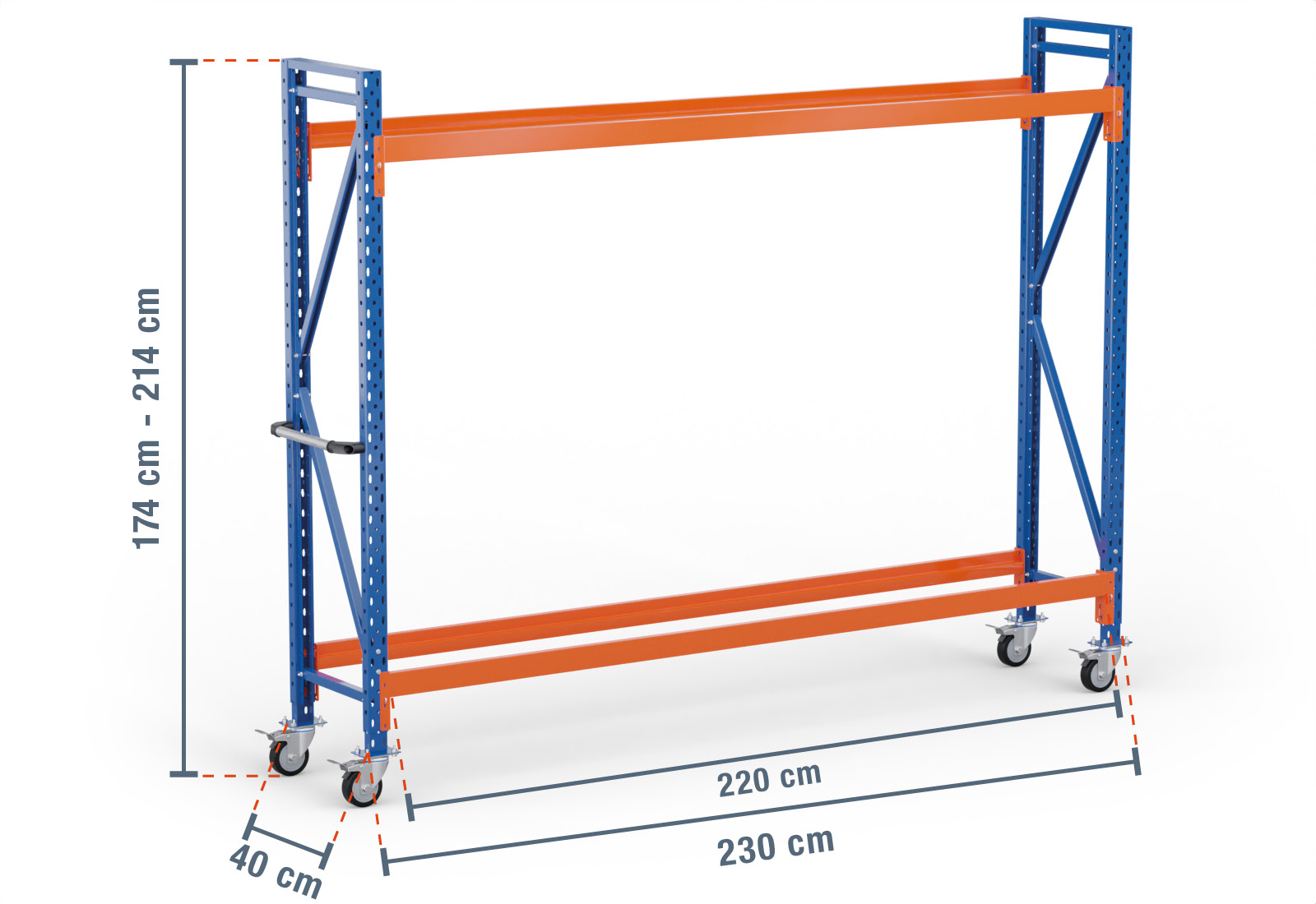 2,3 m rack pour pneus mobile RR2000 / profondeur 40 cm / hauteur 1.740 - 2.140 mm / 2 niveaux