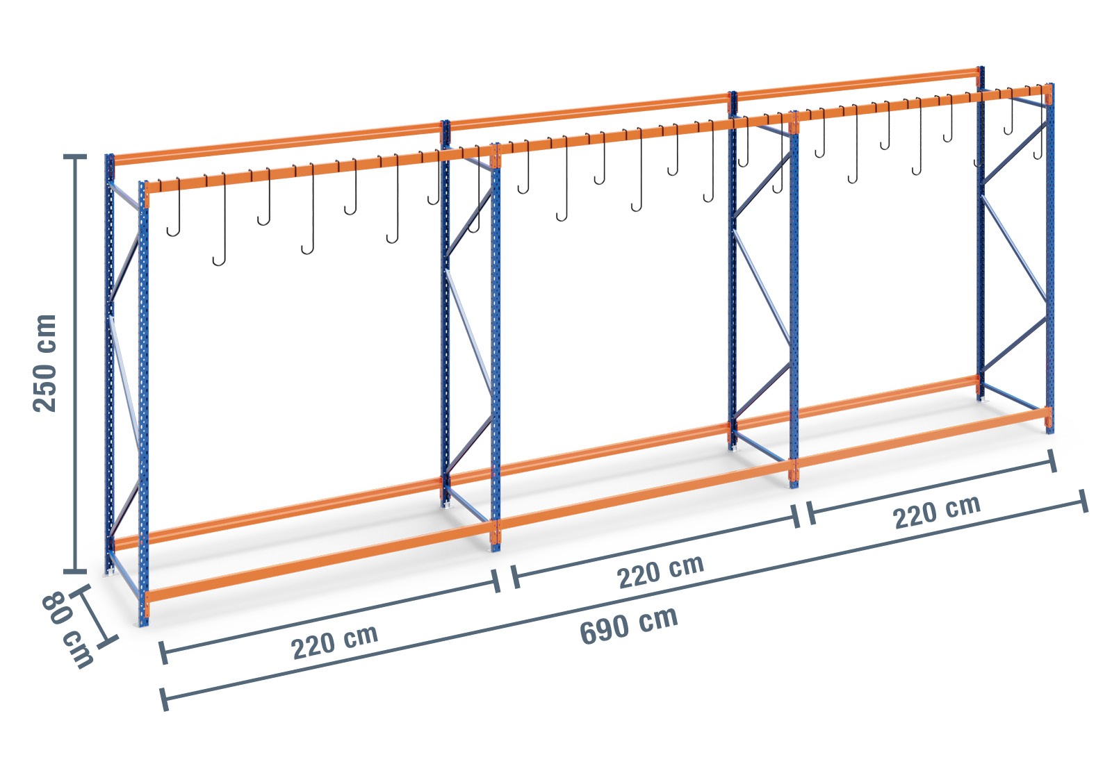 C'est désormais possible grâce à notre nouvelle étagère à vélos entièrement configurée de TOPREGAL. Ce rayonnage à crochets pratique aux dimensions compactes de 6,9 m x 2,5 m x 80 cm séduit par sa structure modulaire. Grâce à celle-ci, il est possible d'ajouter des niveaux supplémentaires et d'élargir la largeur de l'étagère. En plus des crochets 24, il est ainsi possible d'en accrocher d'autres de différentes tailles. La charge maximale d'un crochet à vélo est de 35 kg.