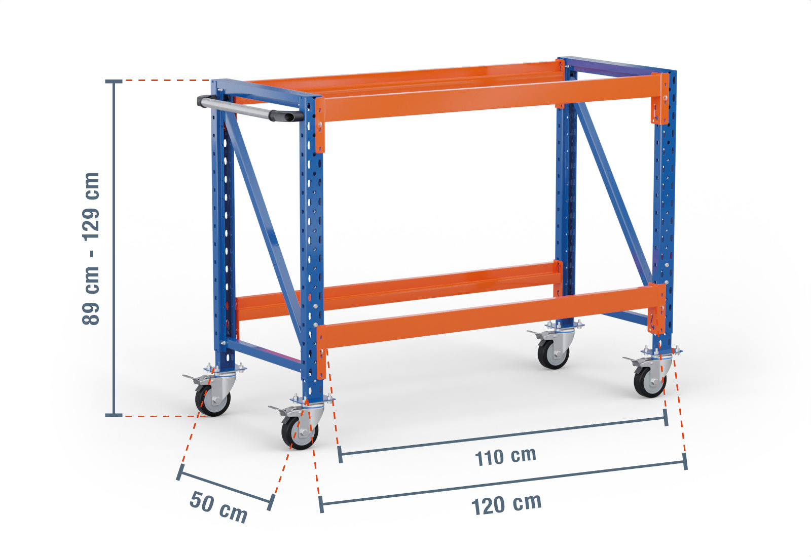 1,2 m rack pour pneus mobile RR2000 / profondeur 50 cm / hauteur 890 - 1.290 mm / 2 niveaux