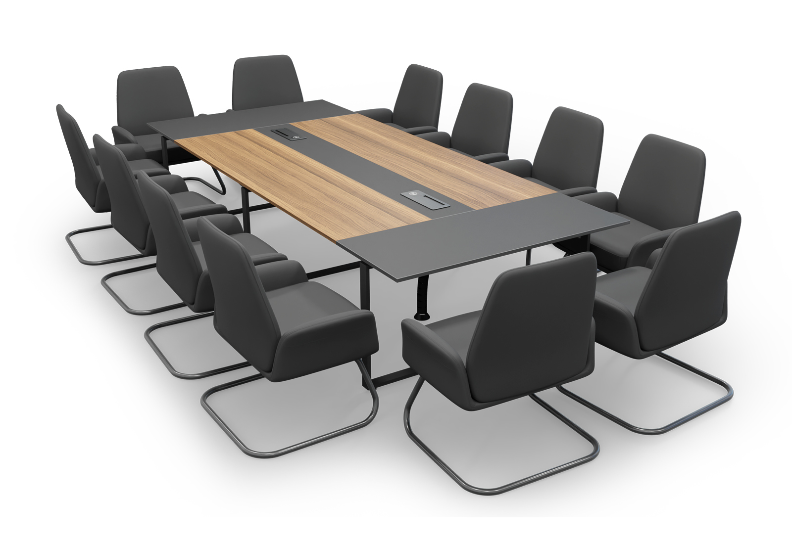 Ensemble table de réunion ANJA360i avec station de recharge à induction en Gris-noyer + 12 chaises MARIE