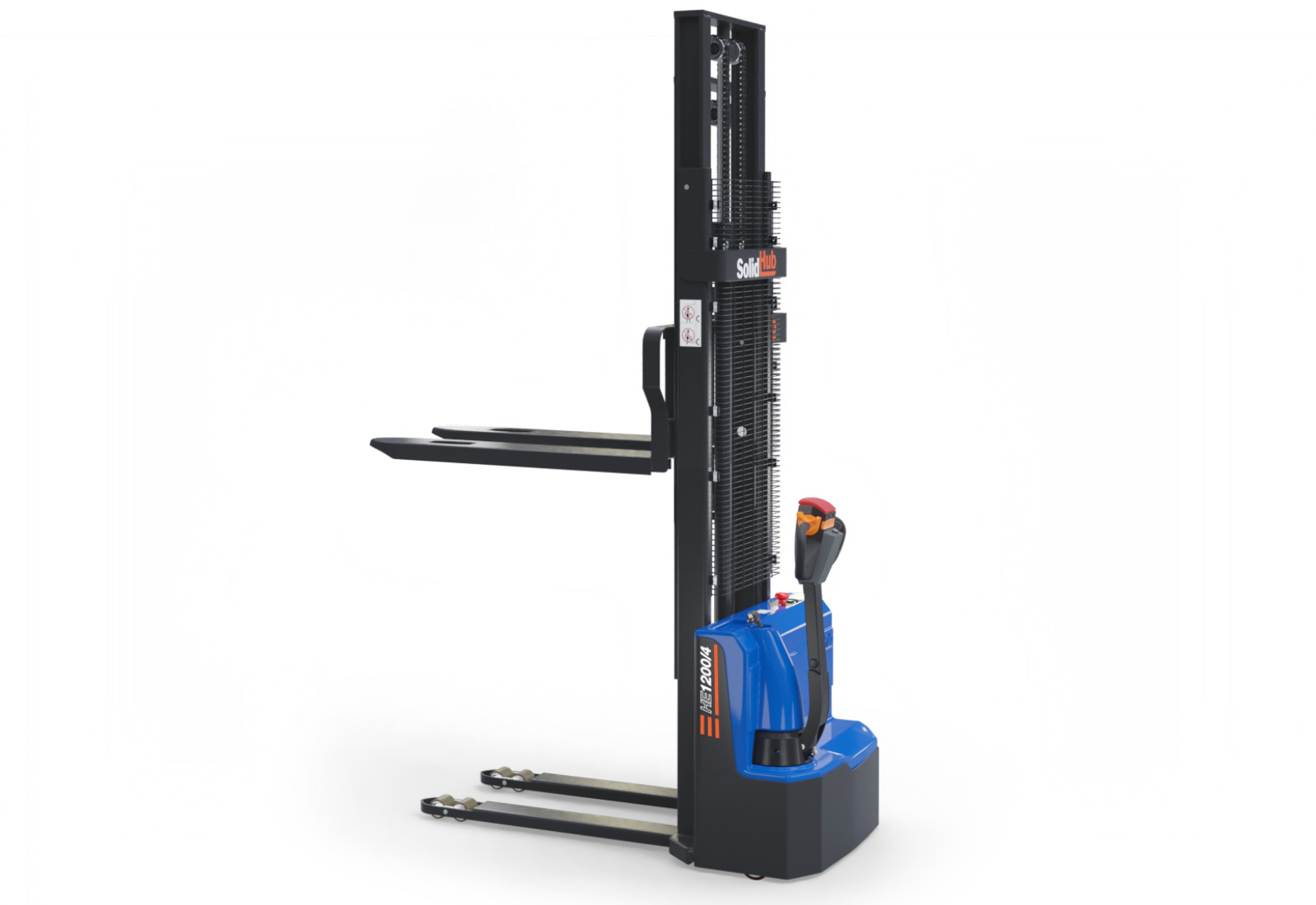 Les gerbeurs électriques SolidHub HE1200/3 et HE1200/4 peuvent transporter des charges jusqu'à 1 200 kg.