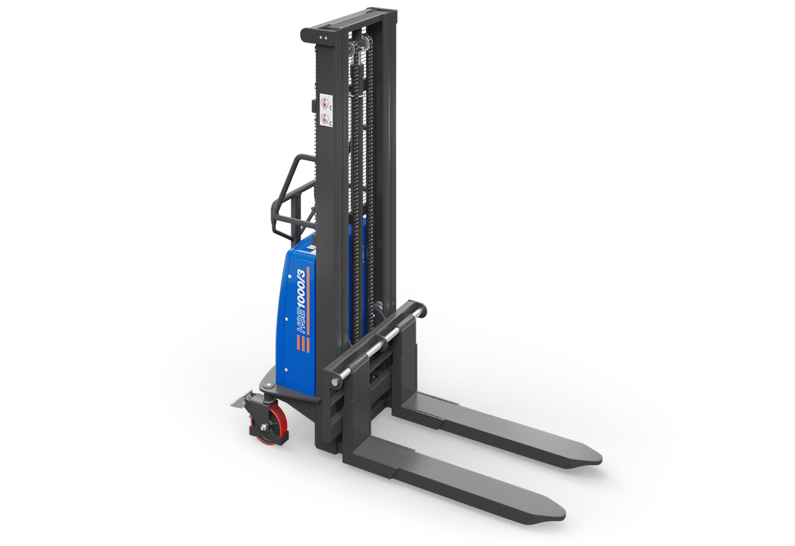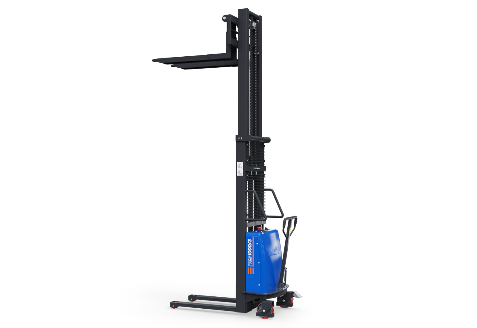 Les gerbeurs électriques SolidHub HE1200/3 et HE1200/4 peuvent transporter des charges jusqu'à 1 200 kg.